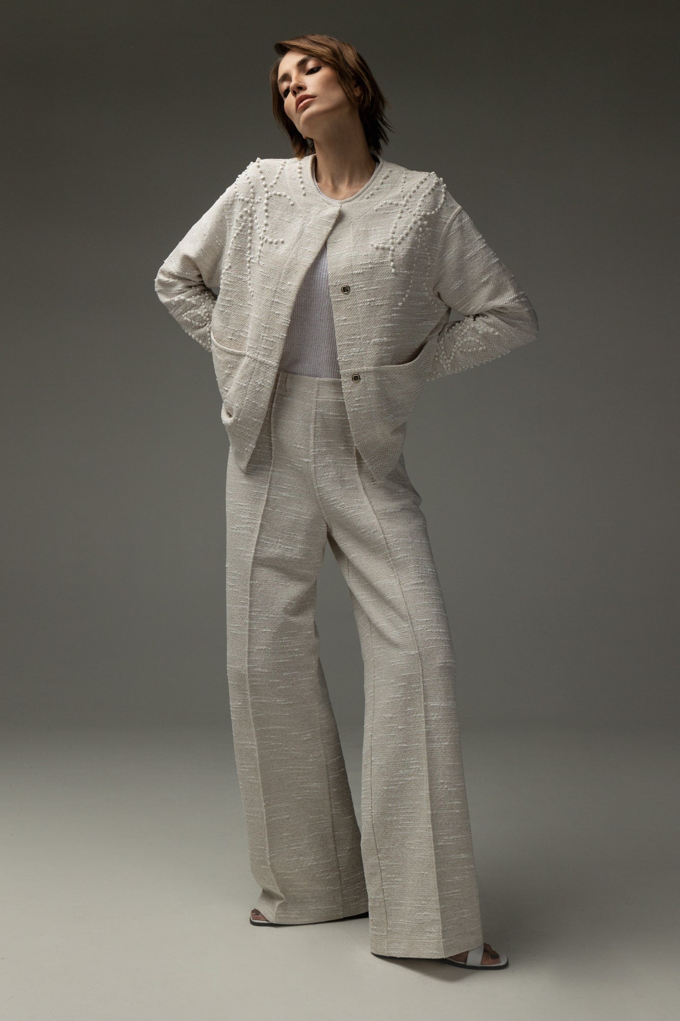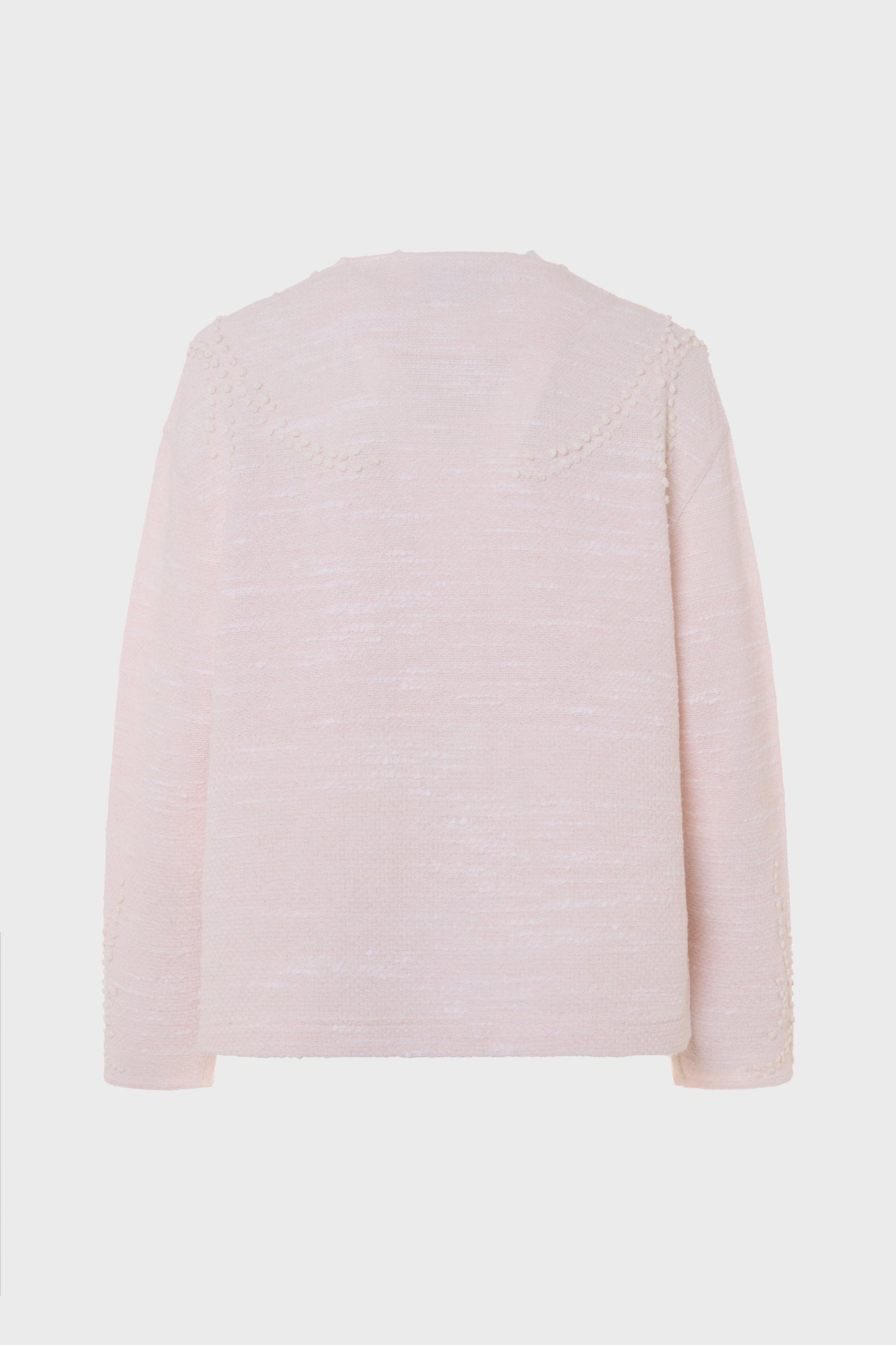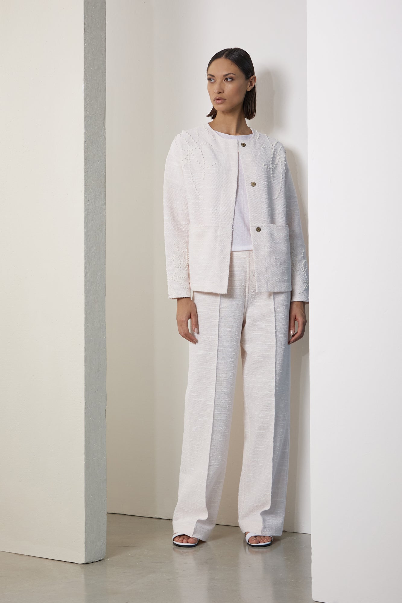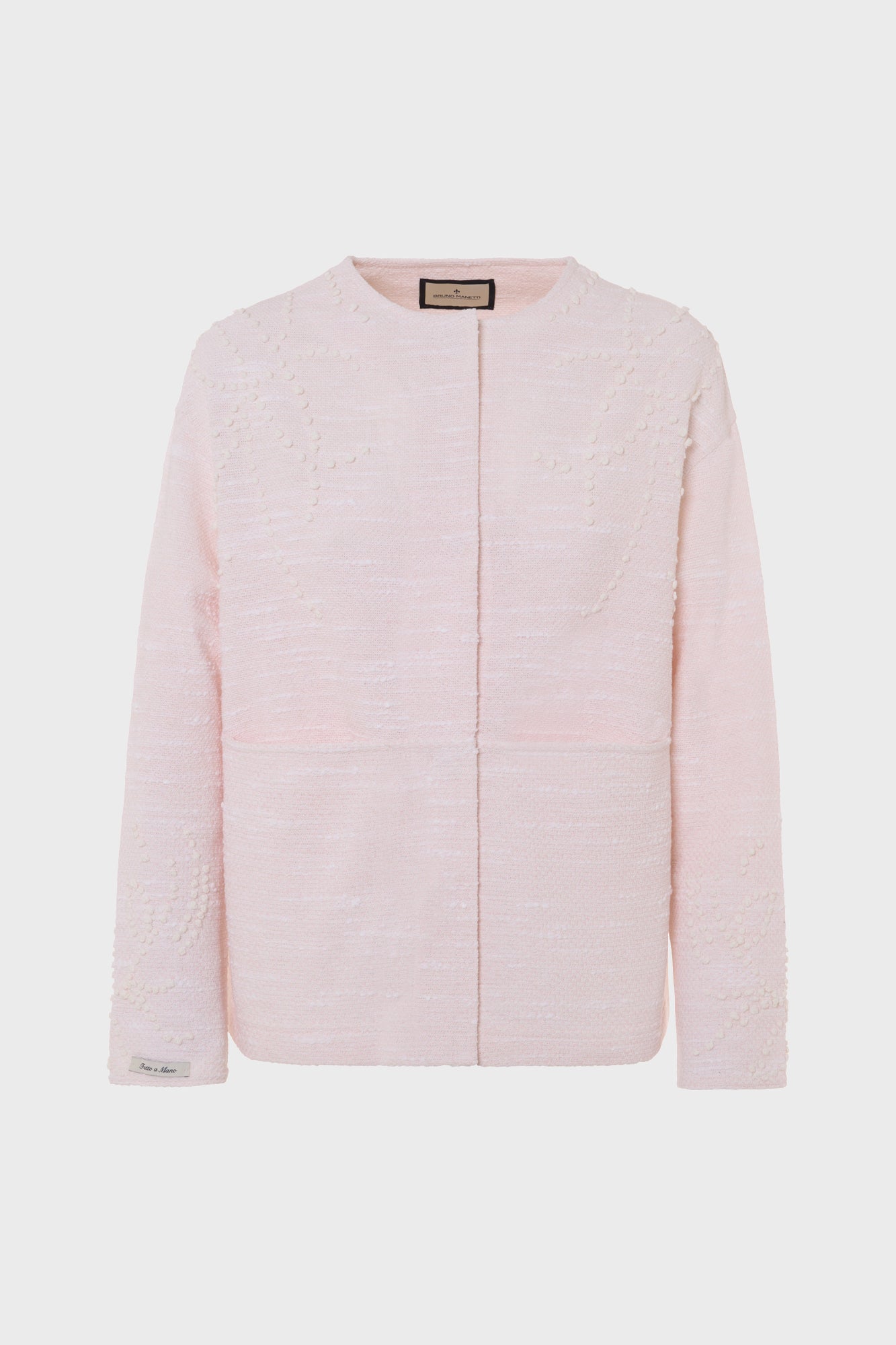 Giacca di cotone con ricamo astratto, bottoni automatici, vestibilità sportiva.