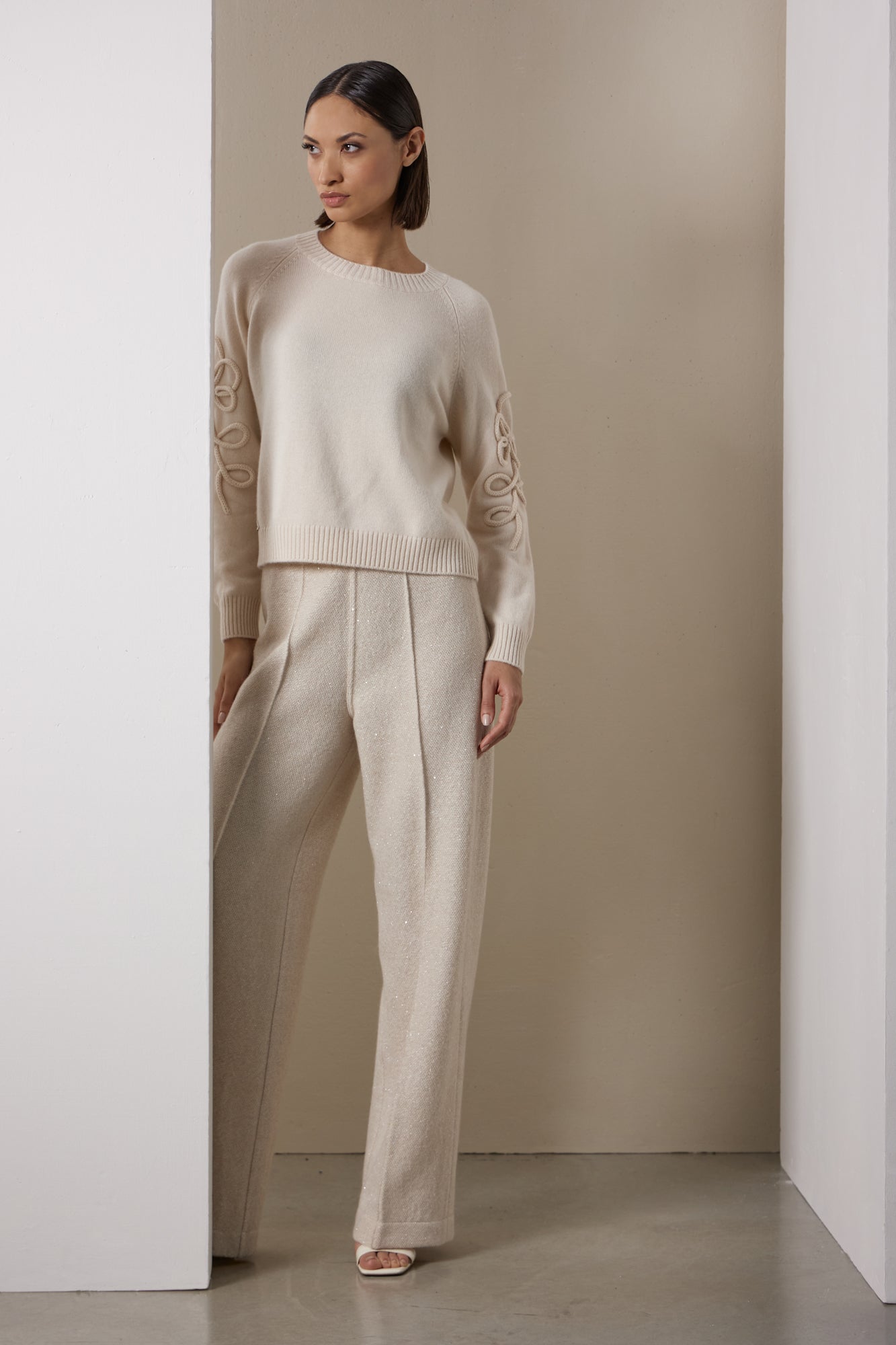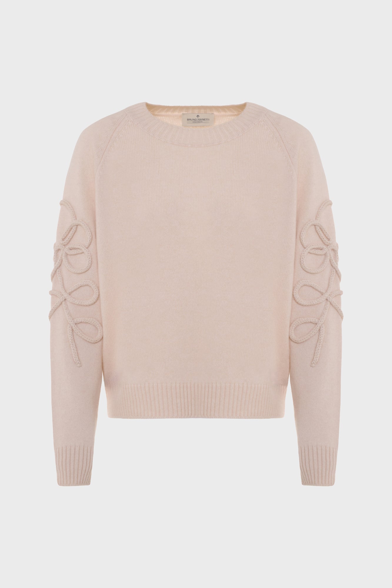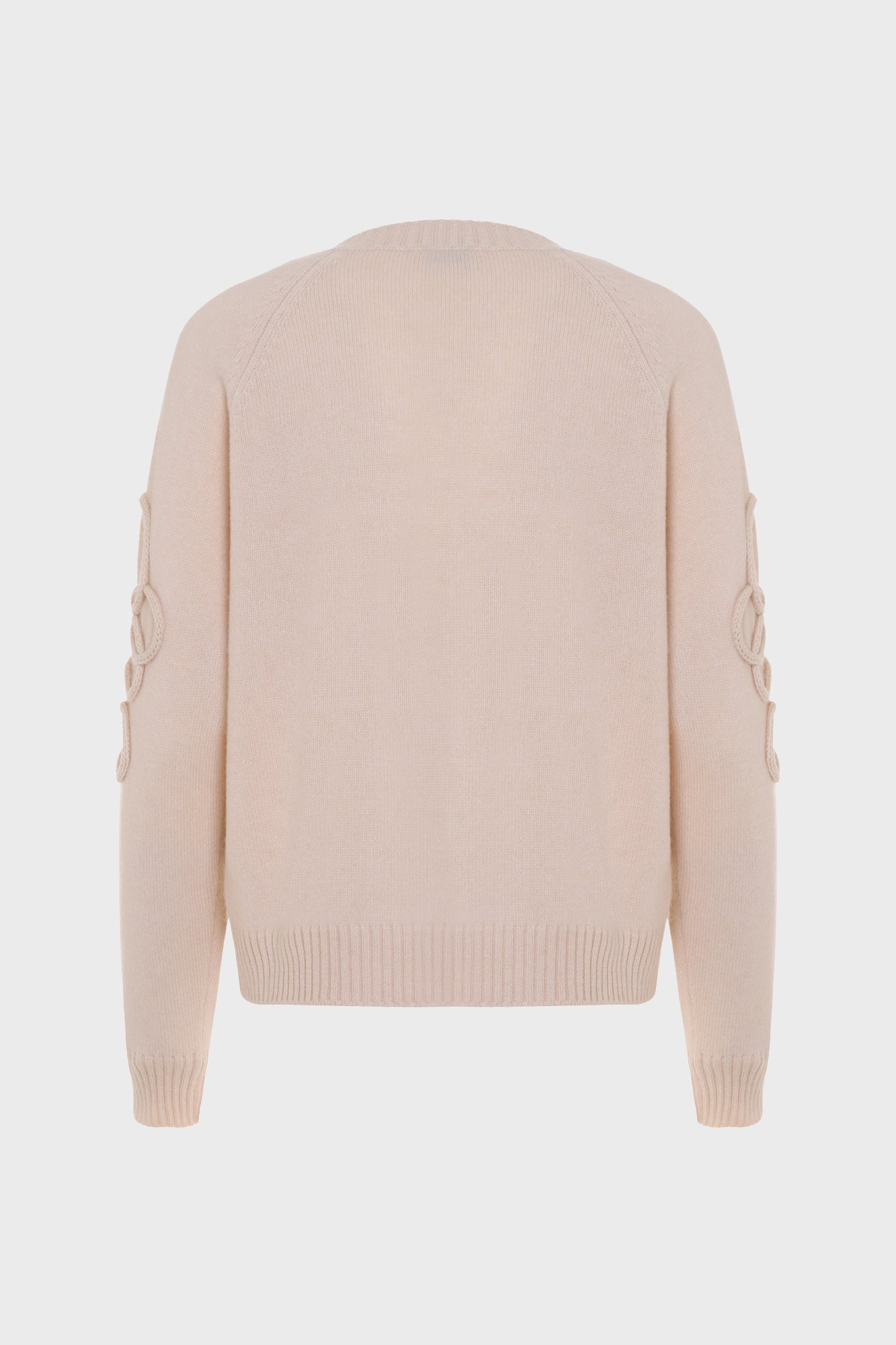 Maglia paricollo 4 fili di 100% cashmere, ricamo floreale.