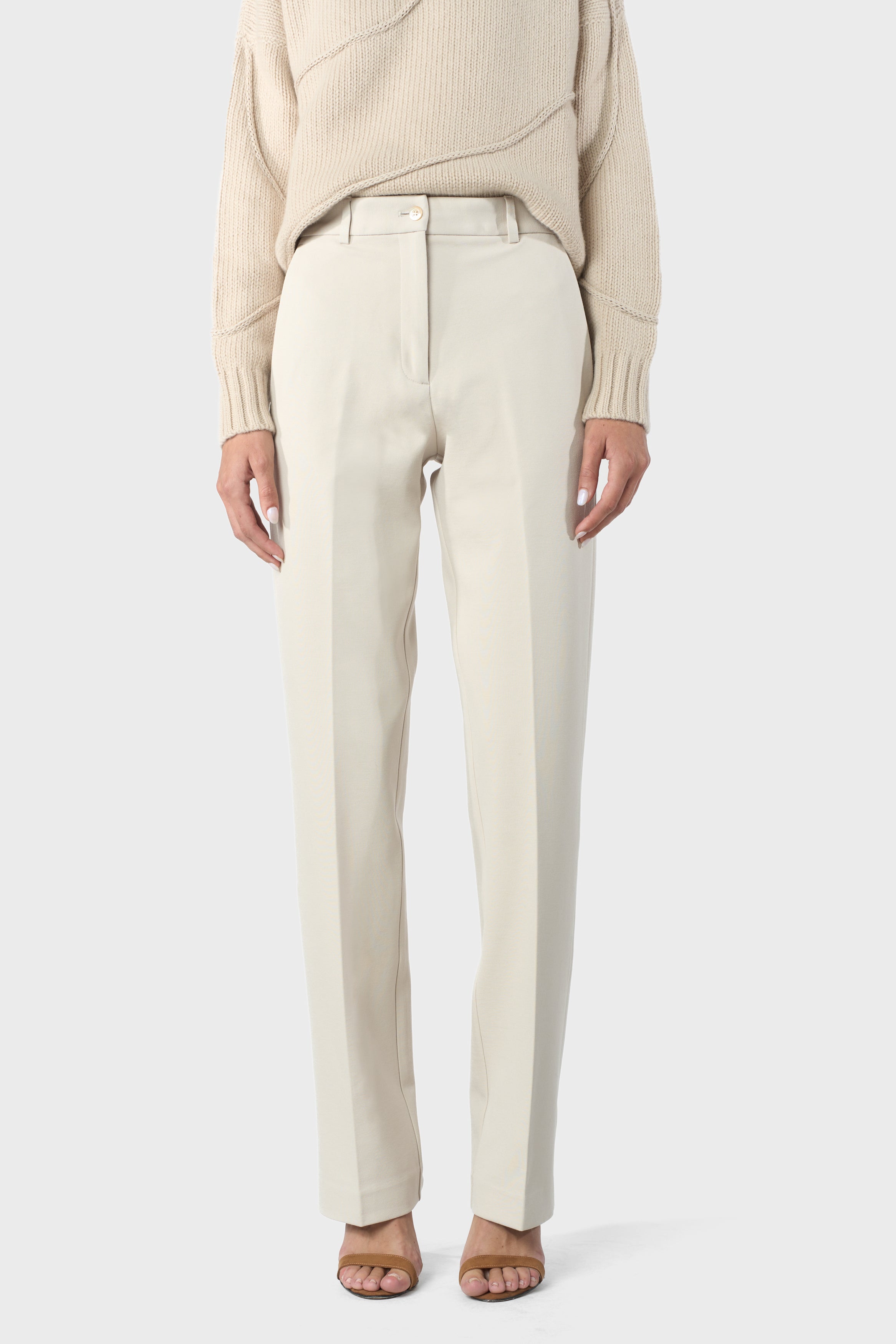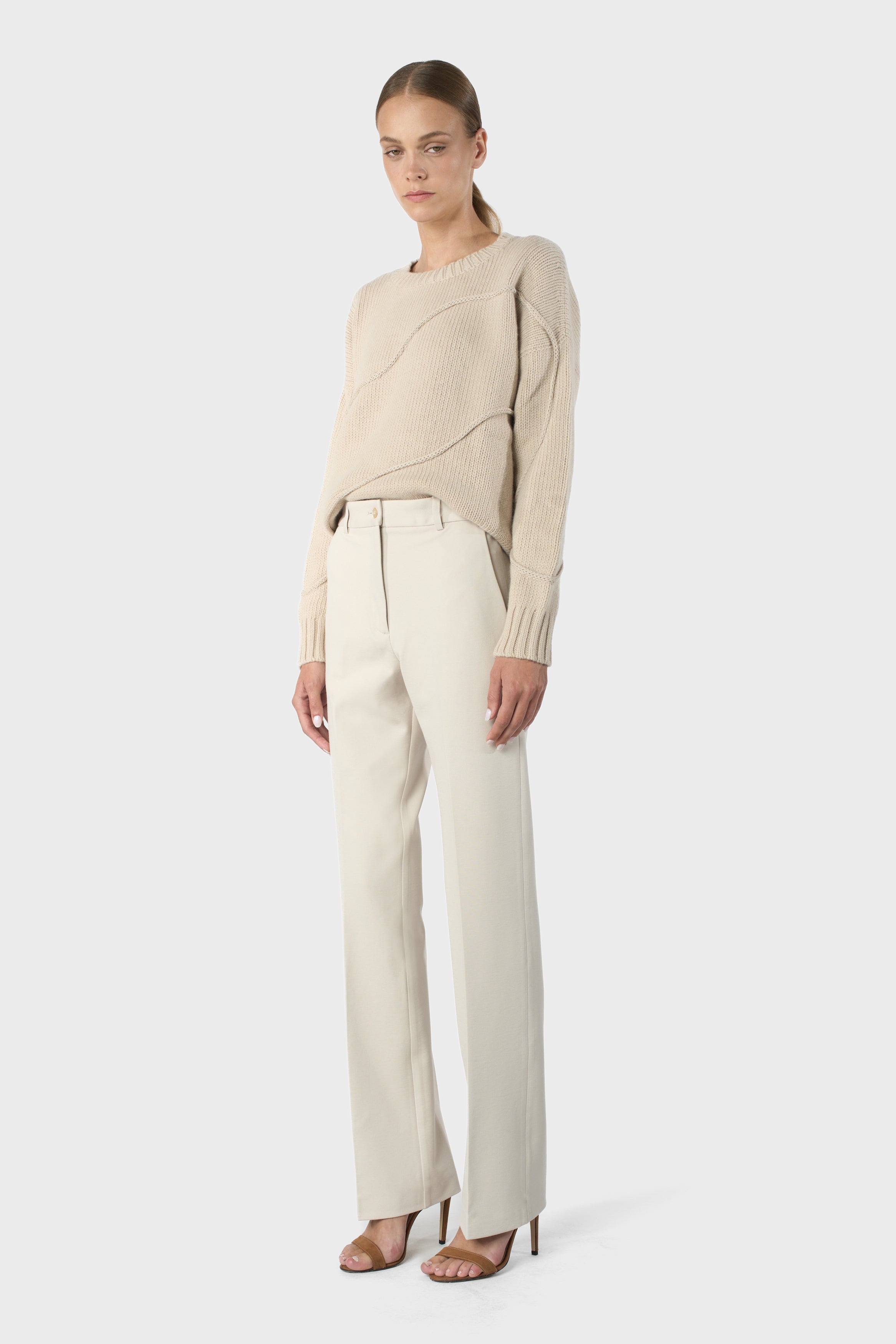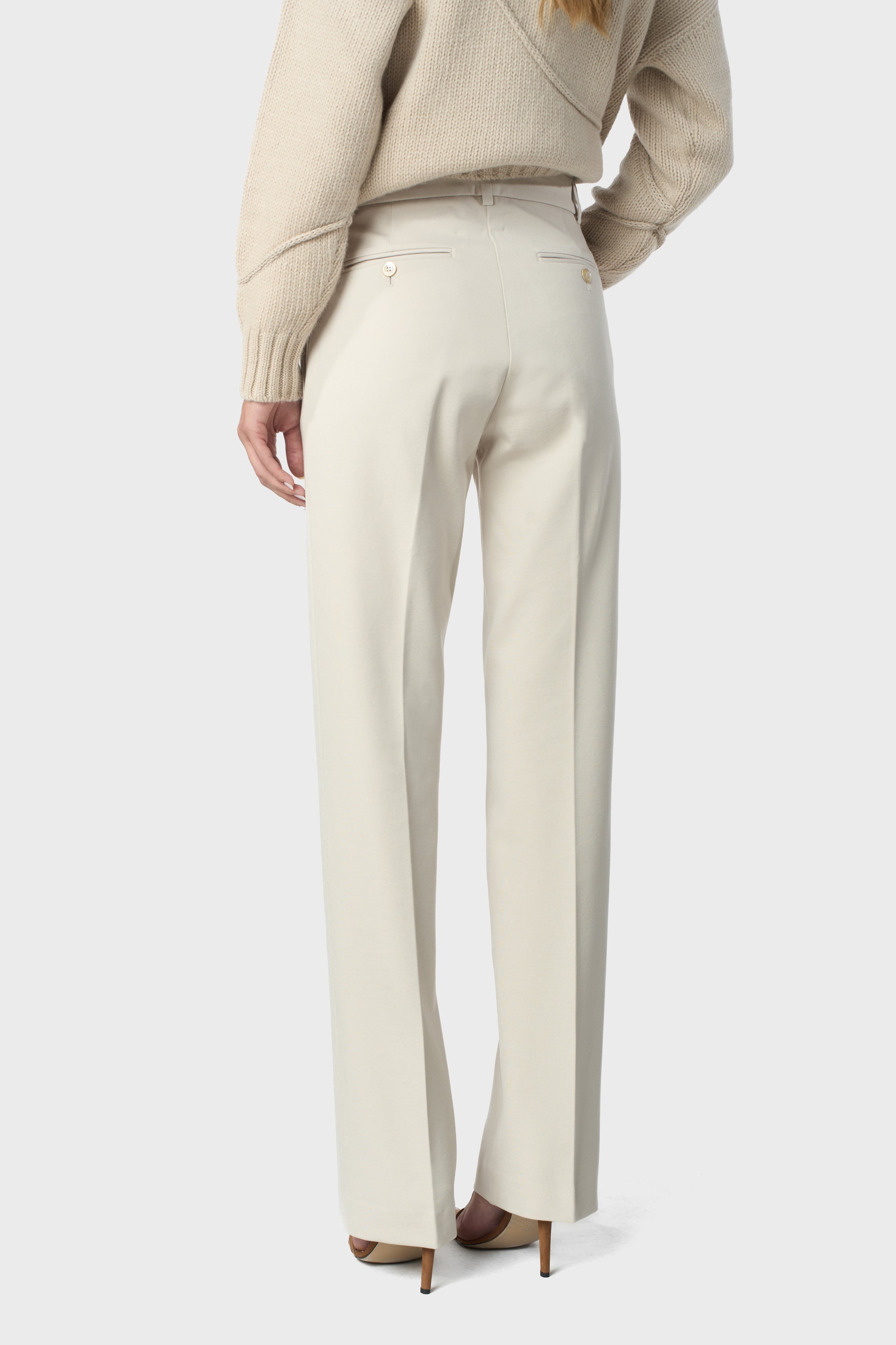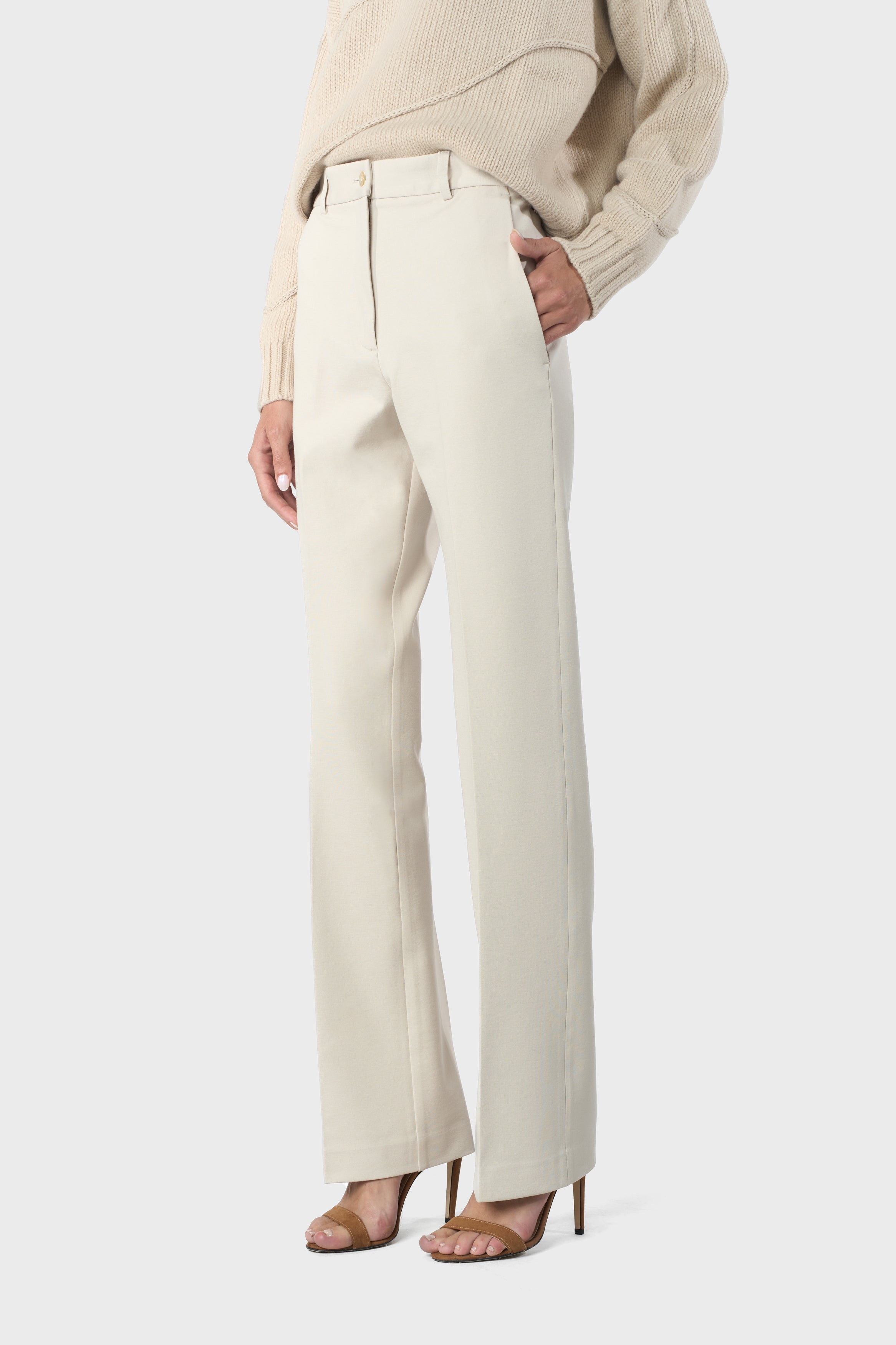 Pantaloni di tessuto di viscosa stretch a vita alta, vestibilità larga e dritta.