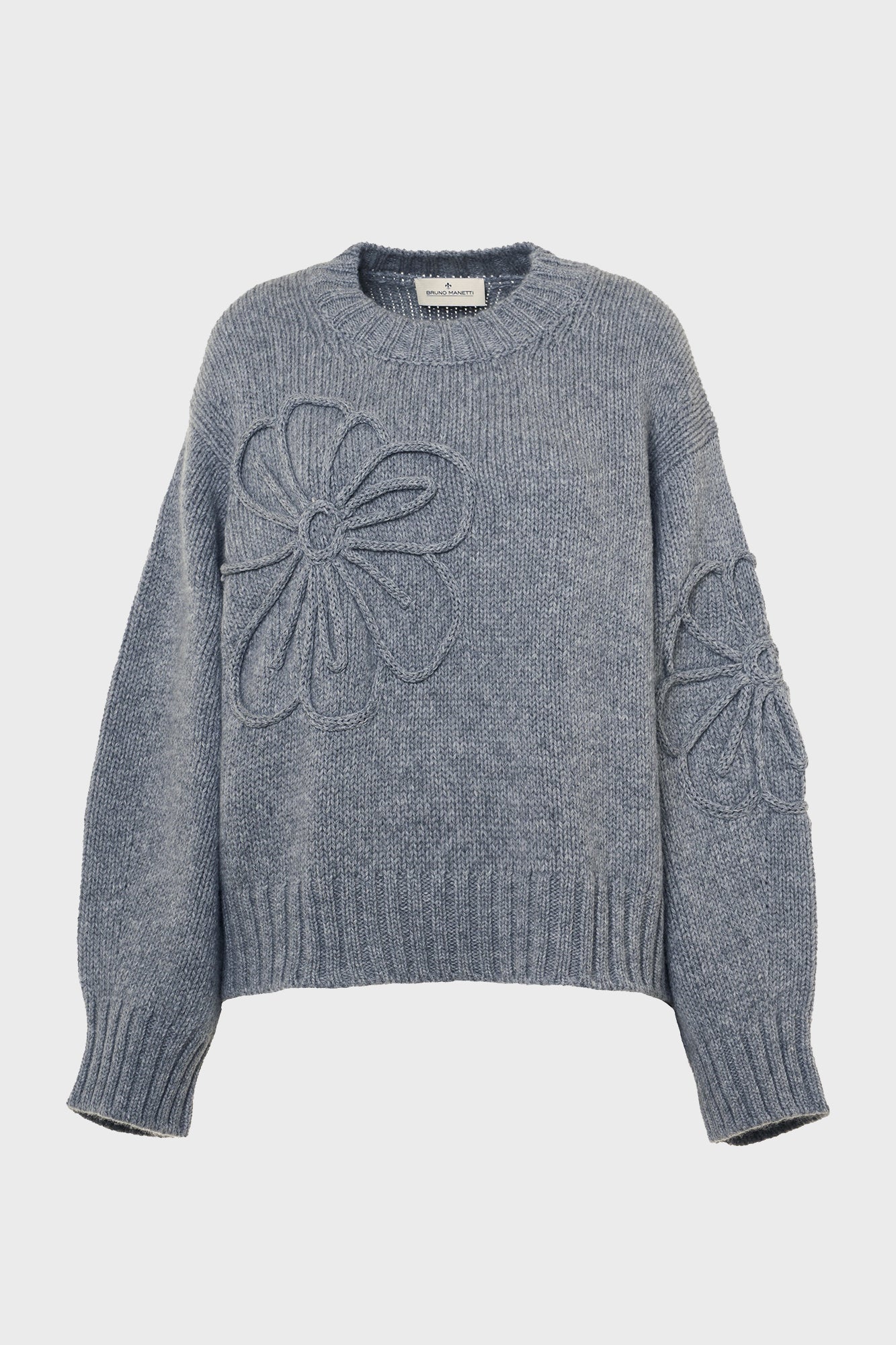 Maglia dia cashmere e lana a 8 fili, vestibilità comoda, ricamo floreale fatto a mano