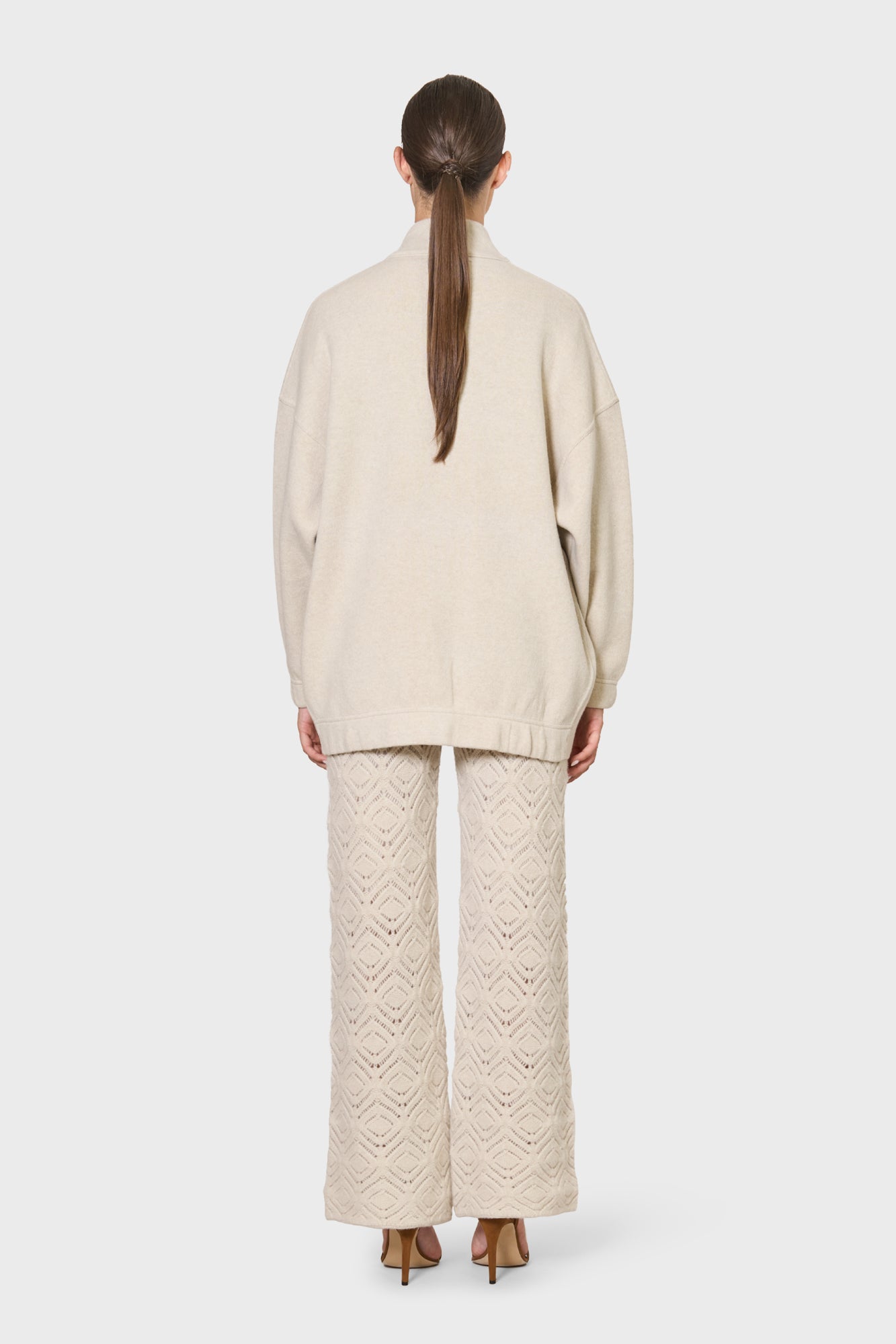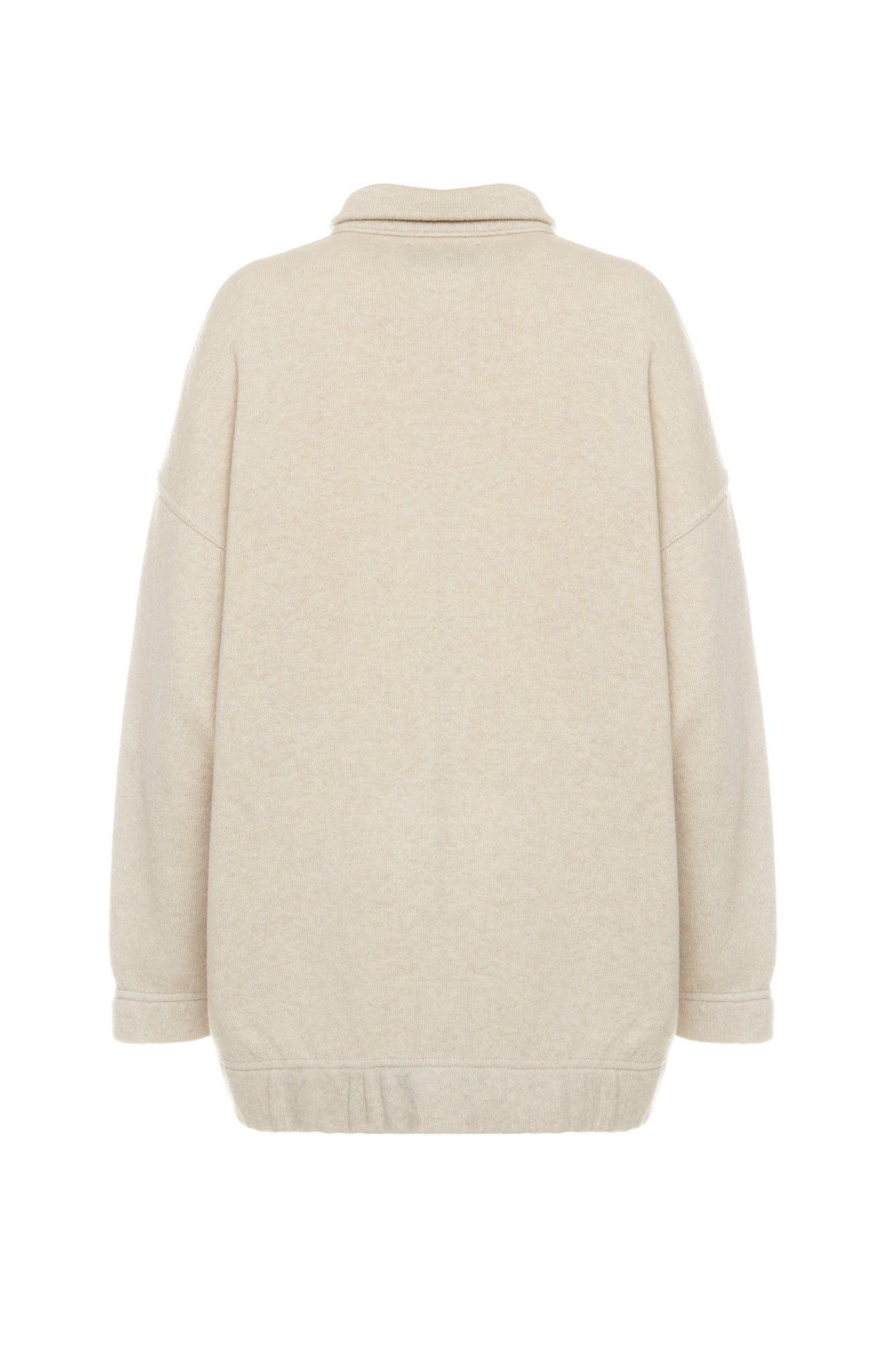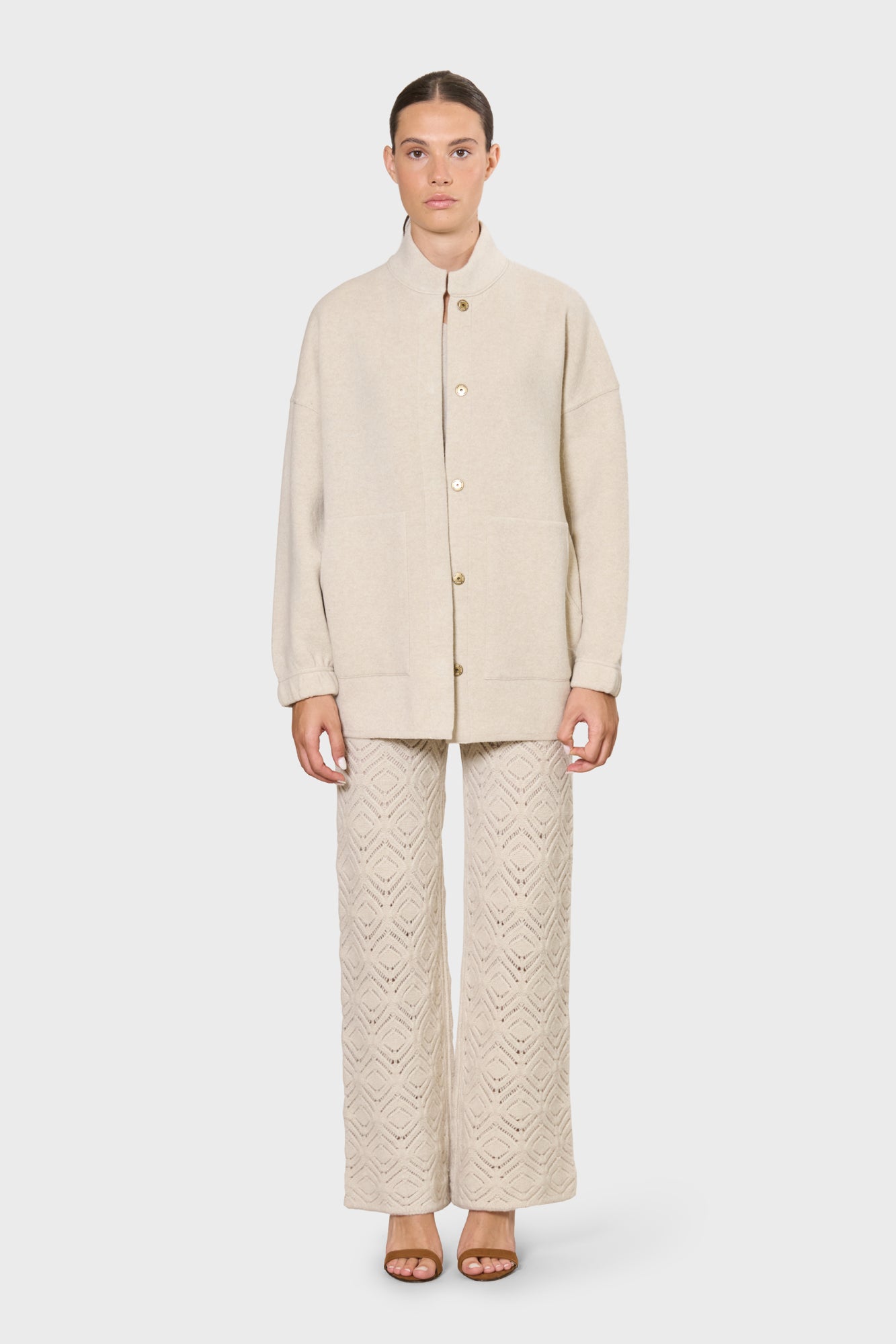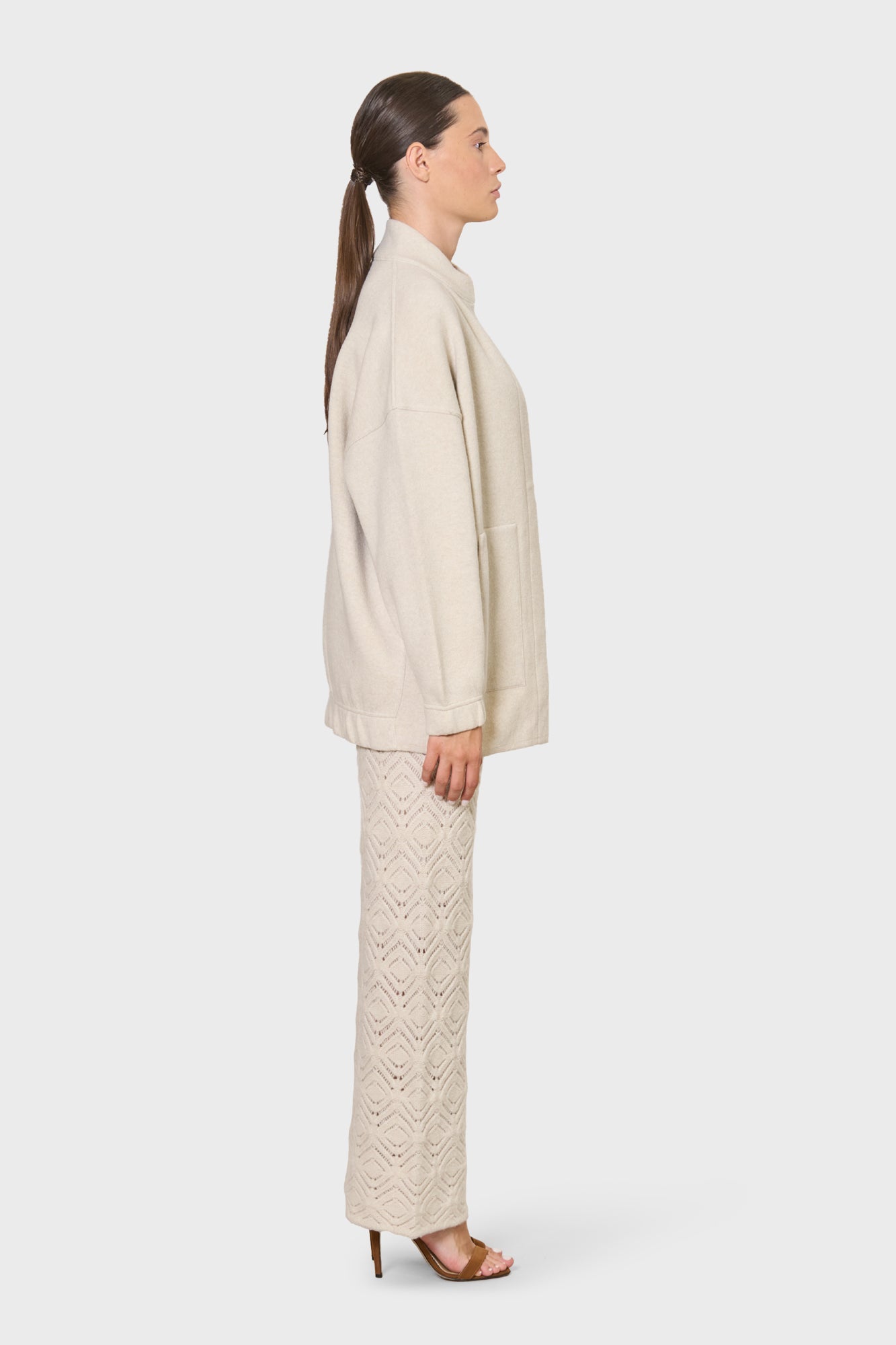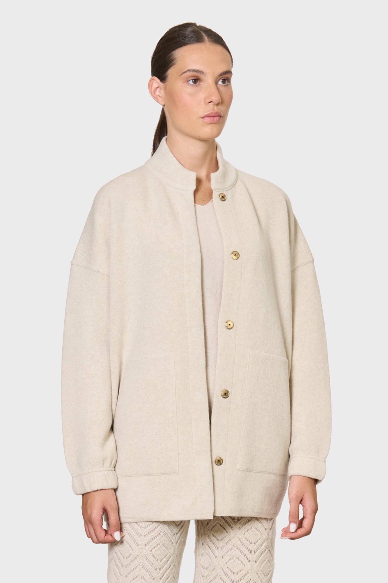 Giacca di tessuto di maglia di 100% lana infeltrita, 2 tasche frontali, 5 bottoni automatici, vestibilità over.