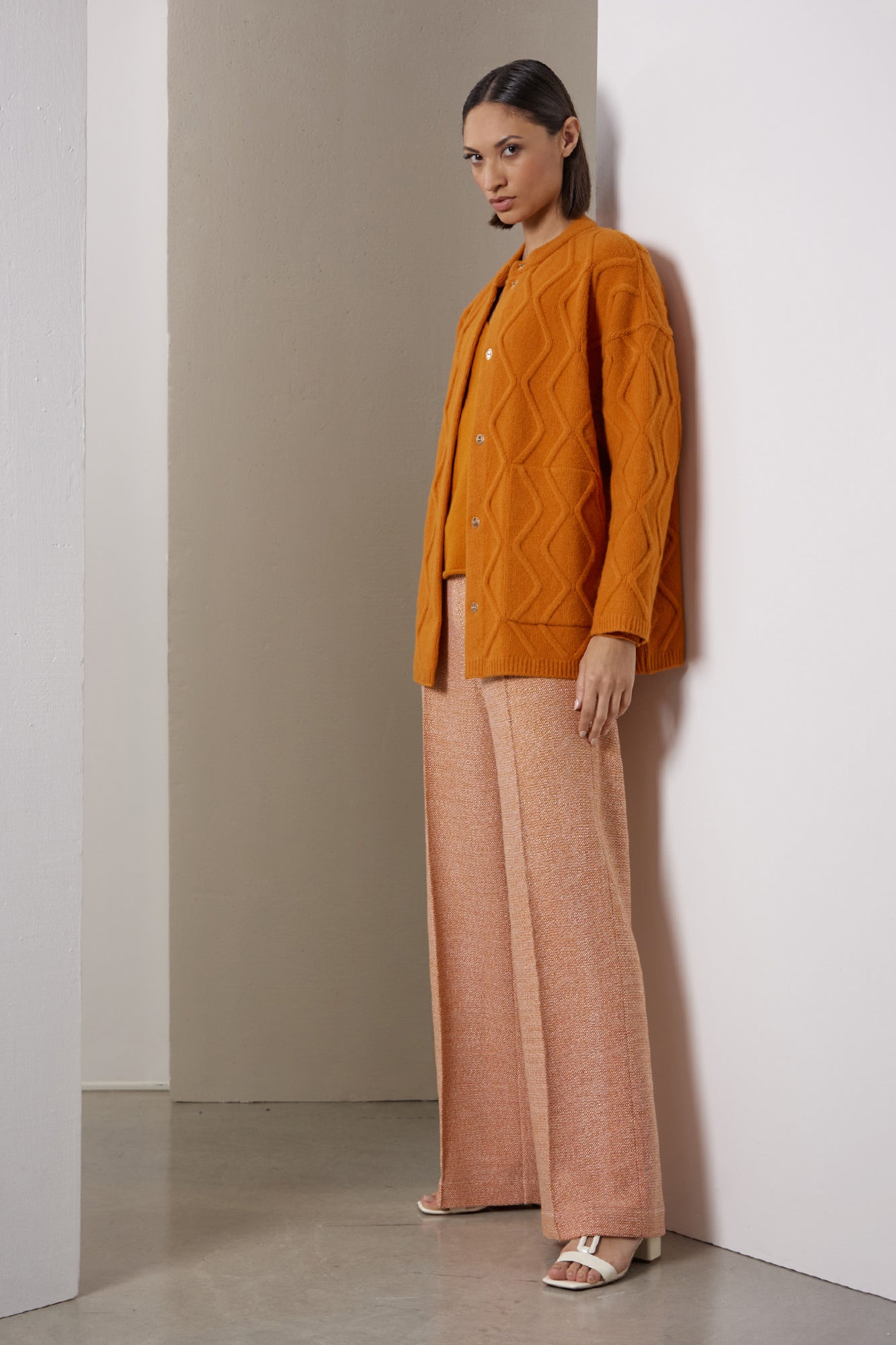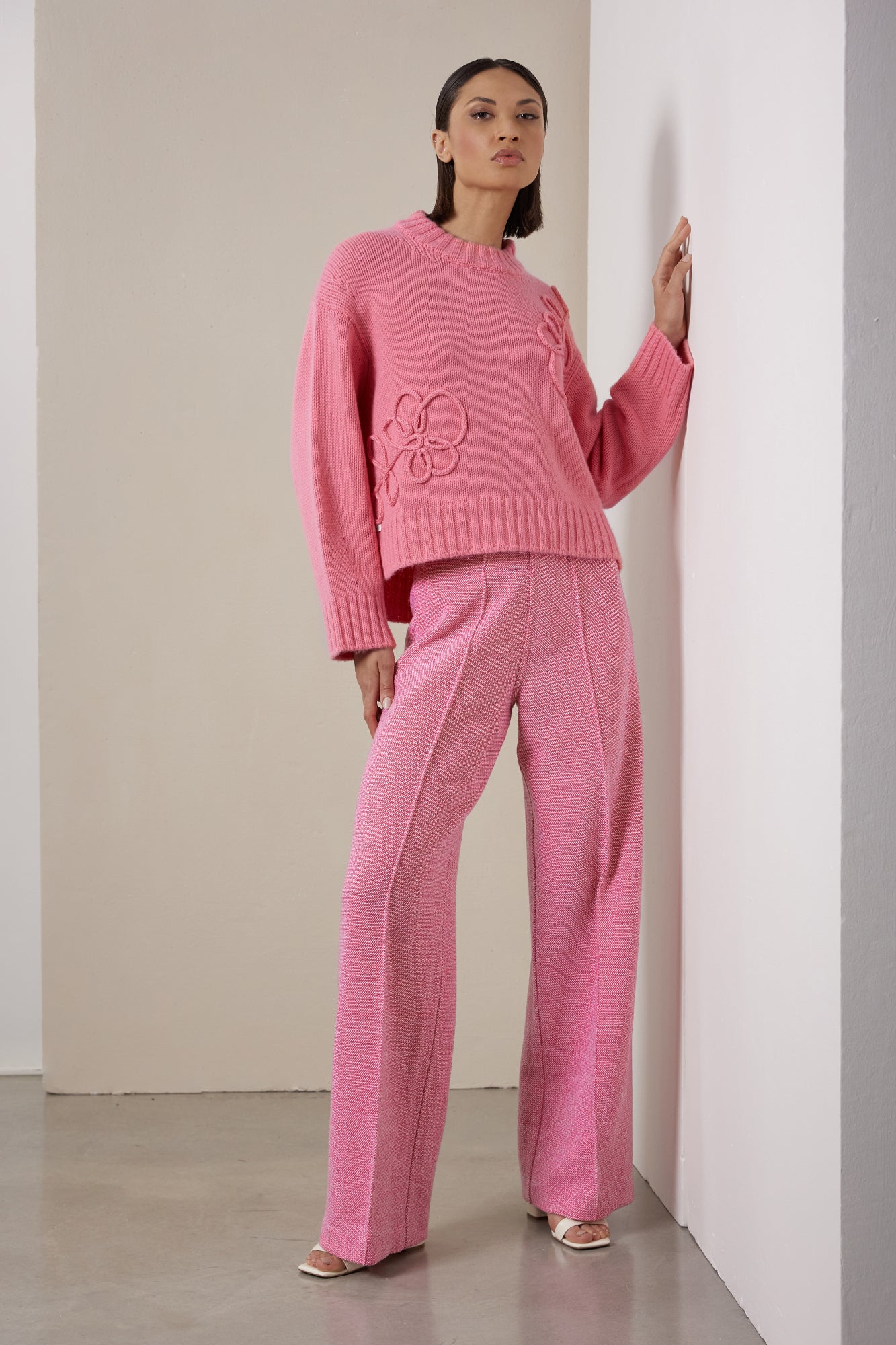 Pantaloni di maglia trama di soffice lana, vestibilità morbida con elastico in vita.