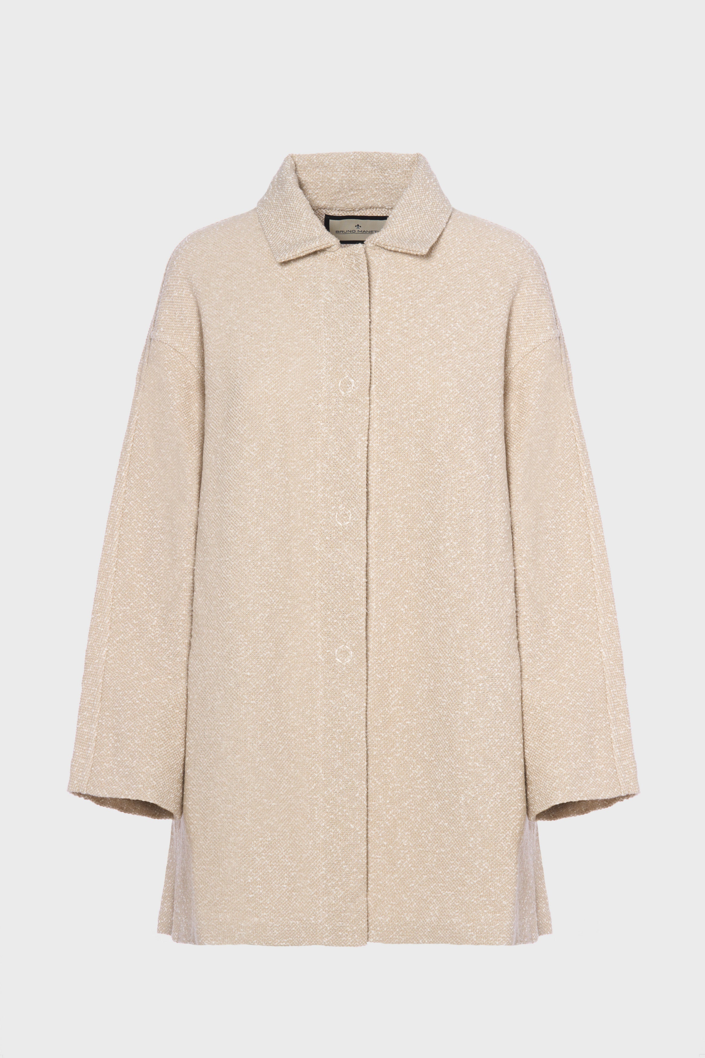 Lunga giacca di maglia di cotone, 2 tasche laterali, 5 bottoni automatici.