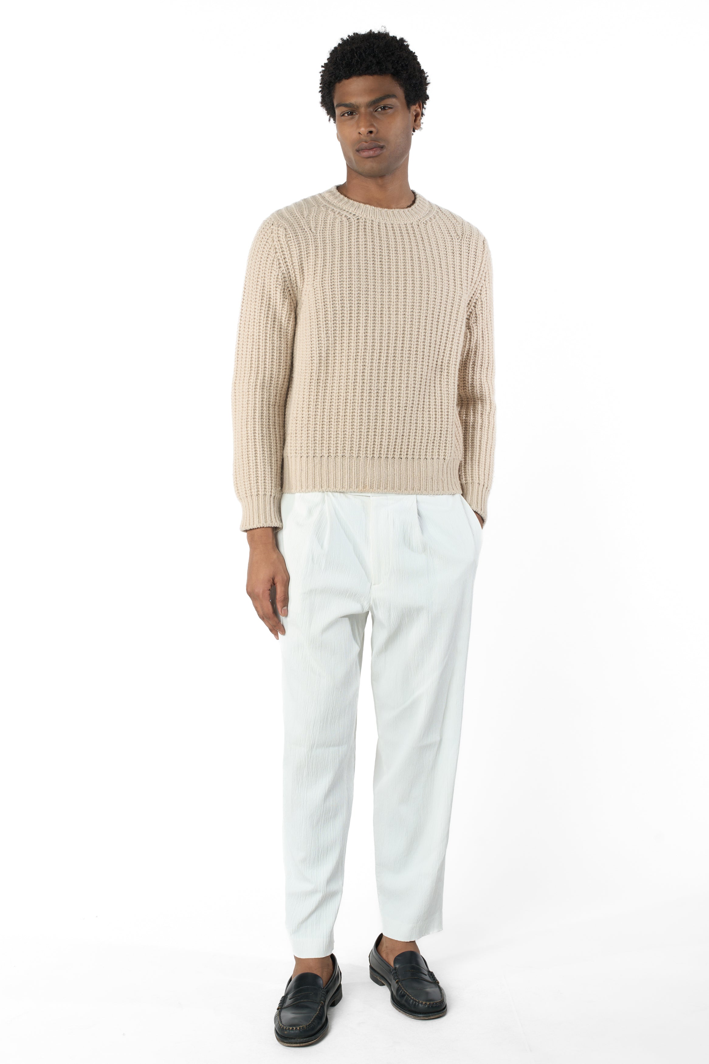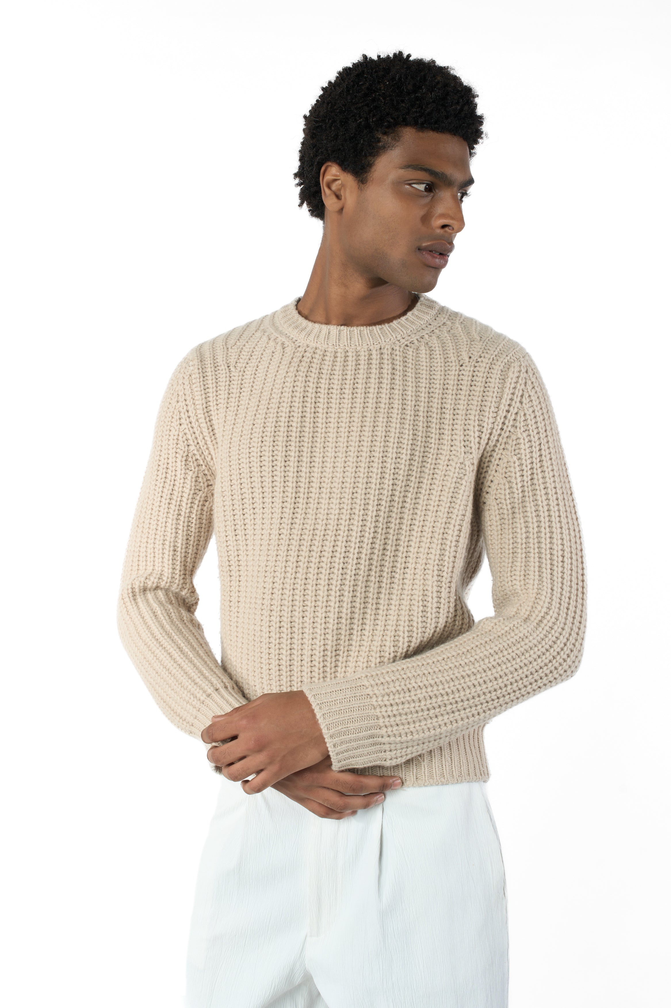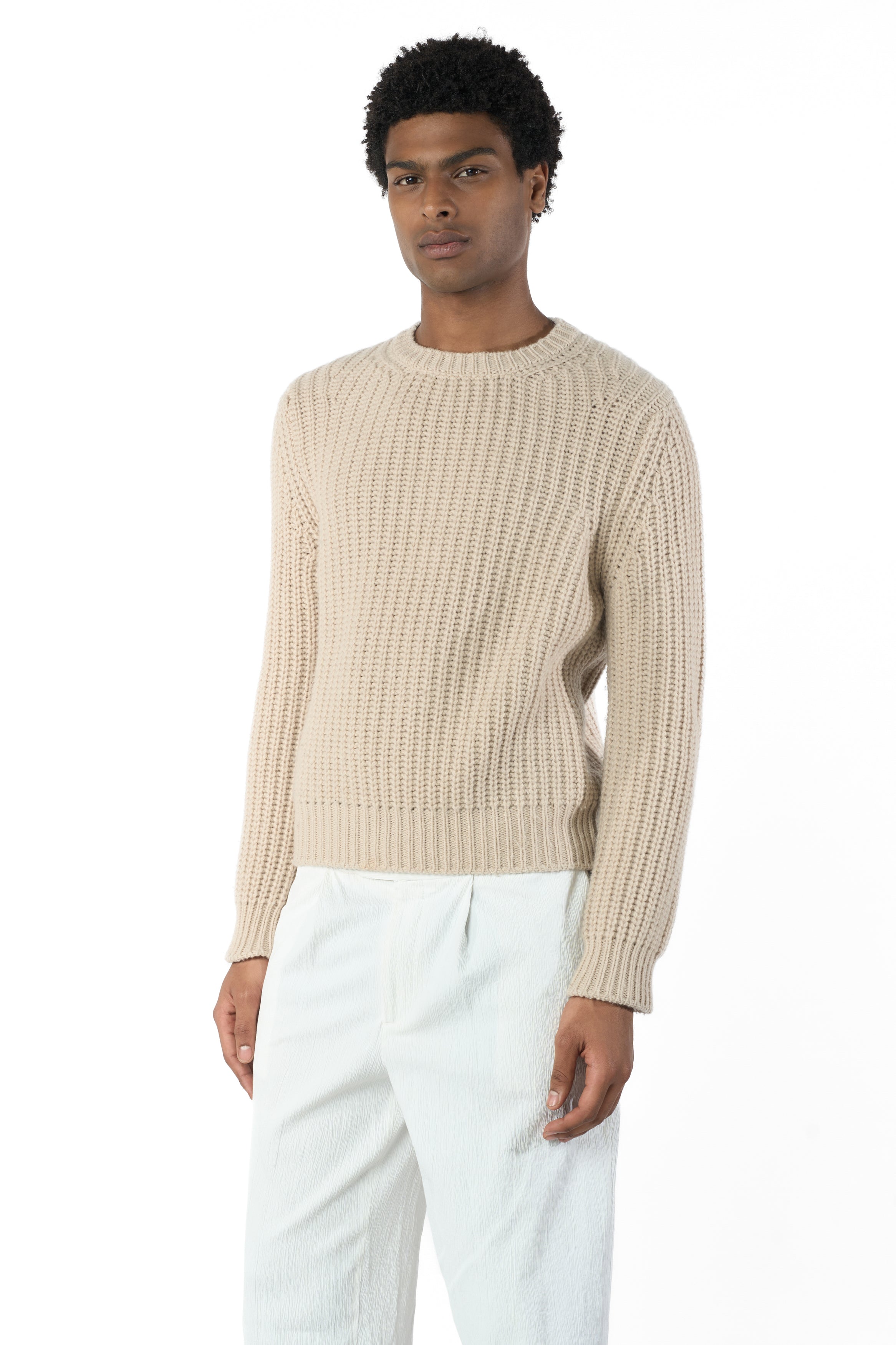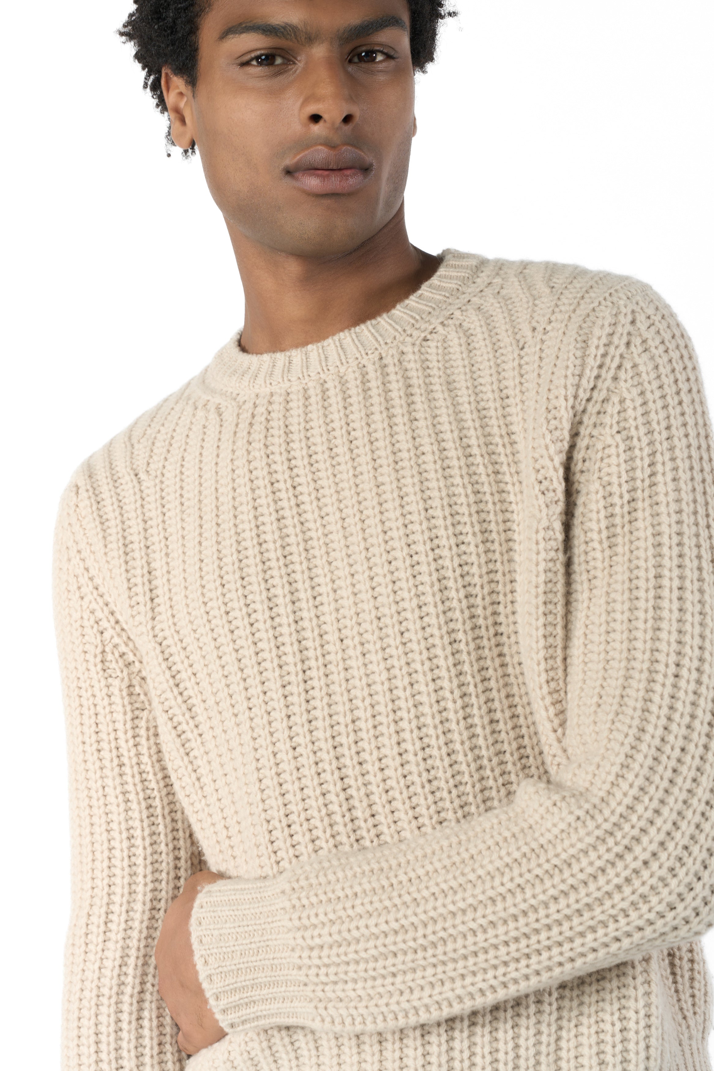 Maglia paricollo di misto cashmere, Maglia perlata a 6 fili, forma sportiva.