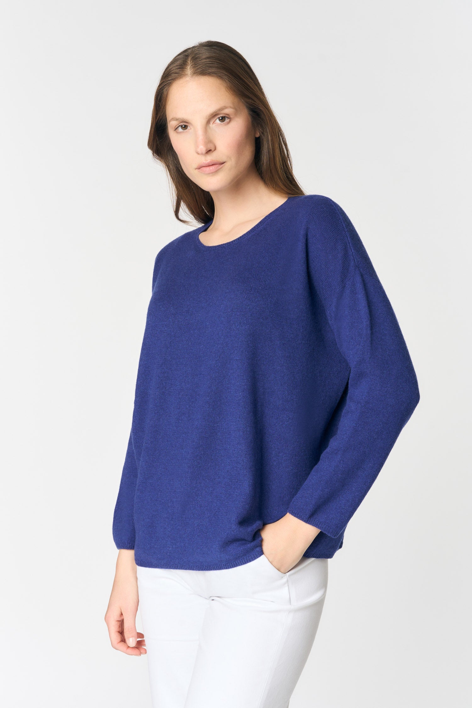 Maglia di 100% cashmere a 2 fili, estremamente leggera e soffice, forma a t-shirt leggermente over