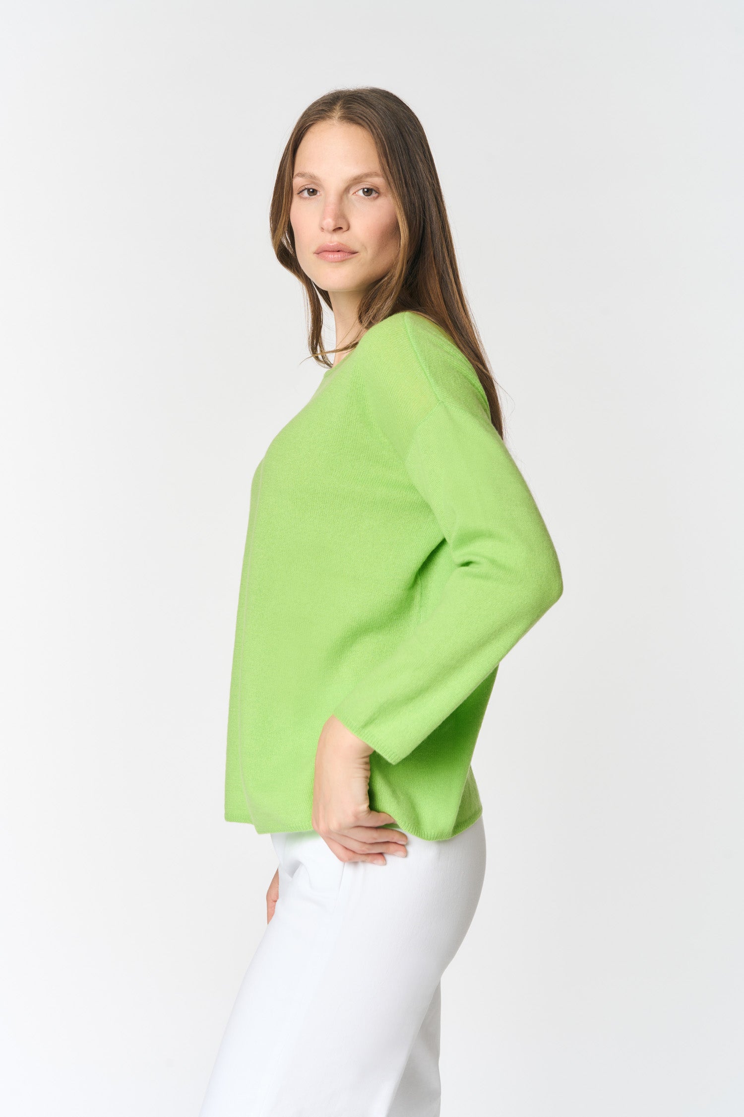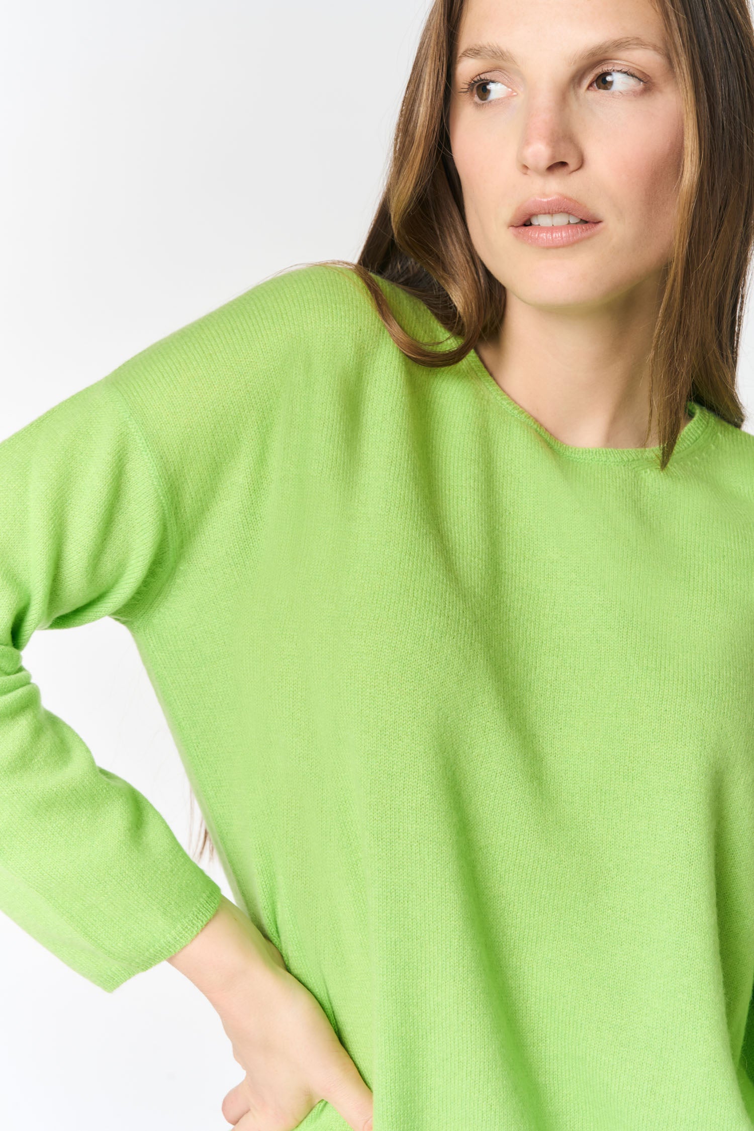Maglia di 100% cashmere a 2 fili, estremamente leggera e soffice, forma a t-shirt leggermente over