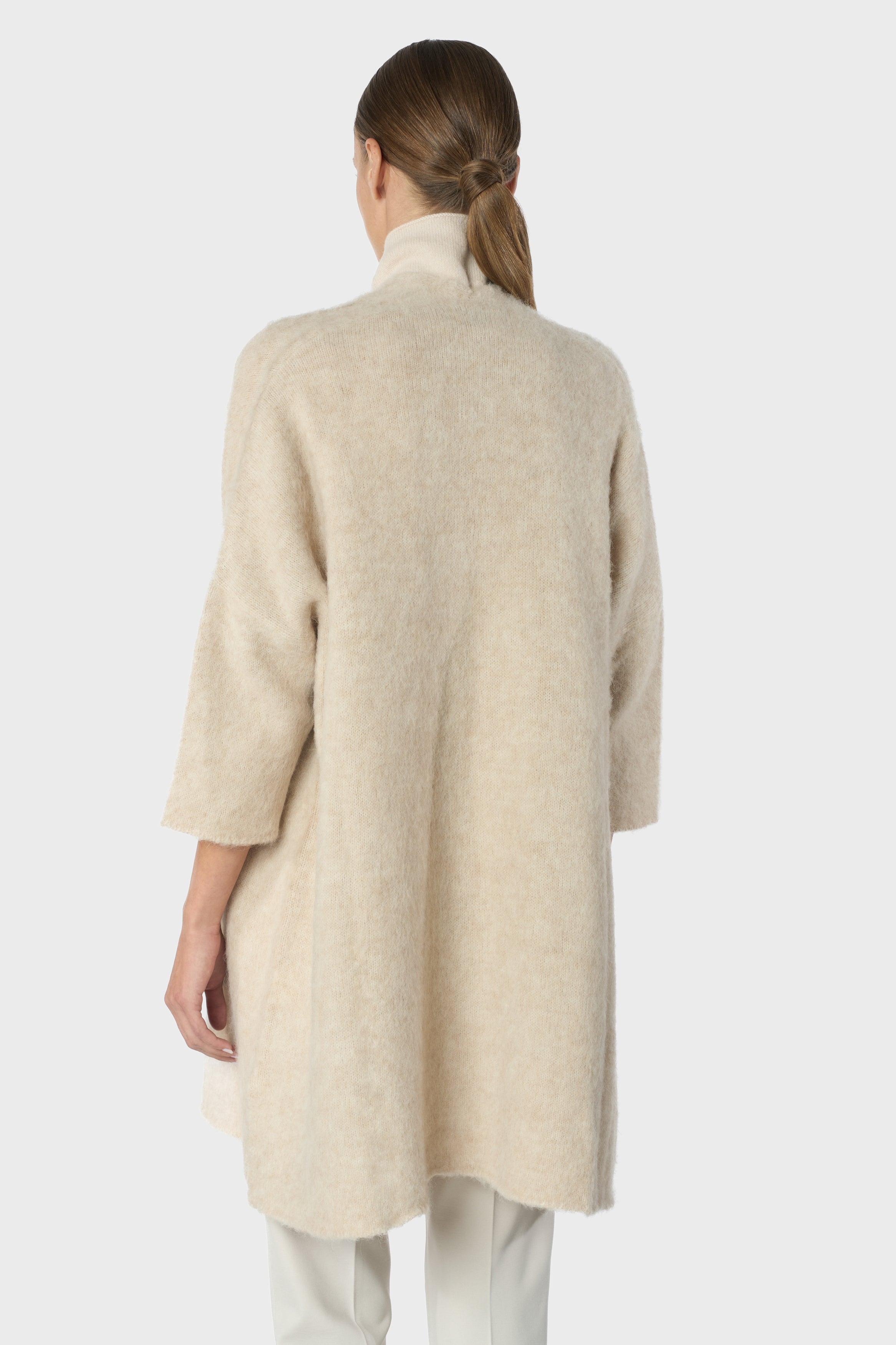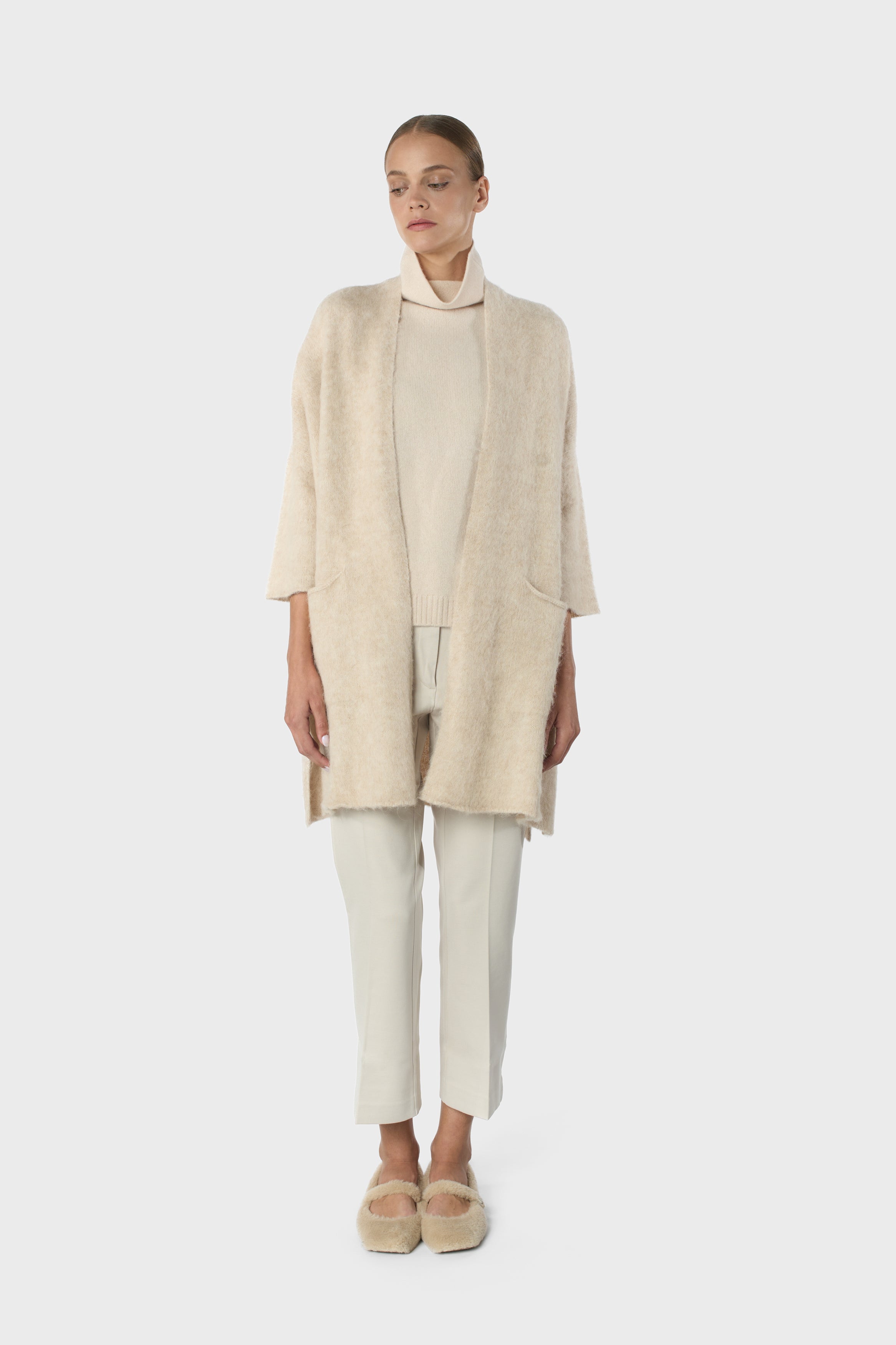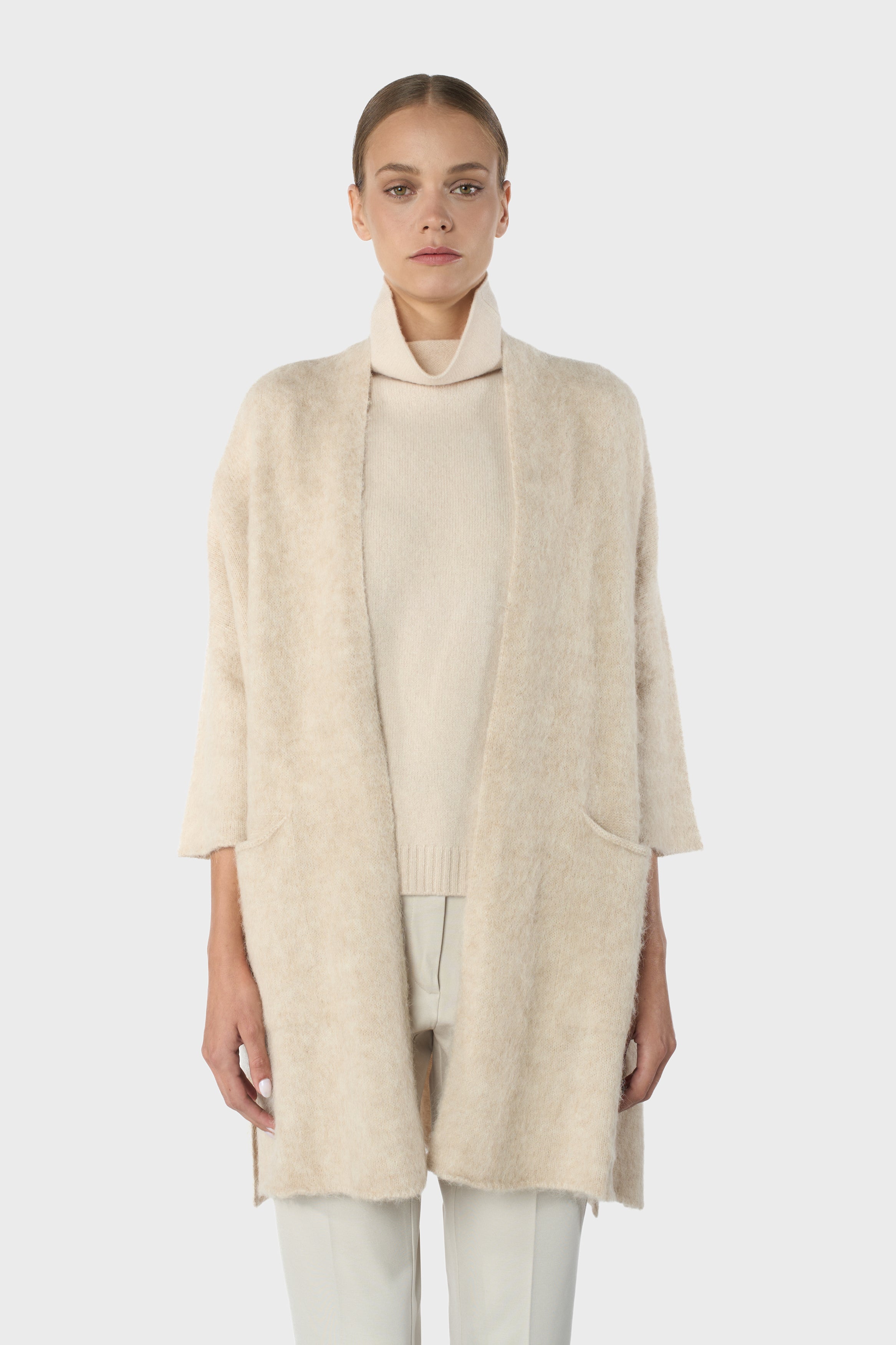 Brushed alpaca and wool maxi cardigan, 2 big front pockets, no buttons, cozy and contemporary.