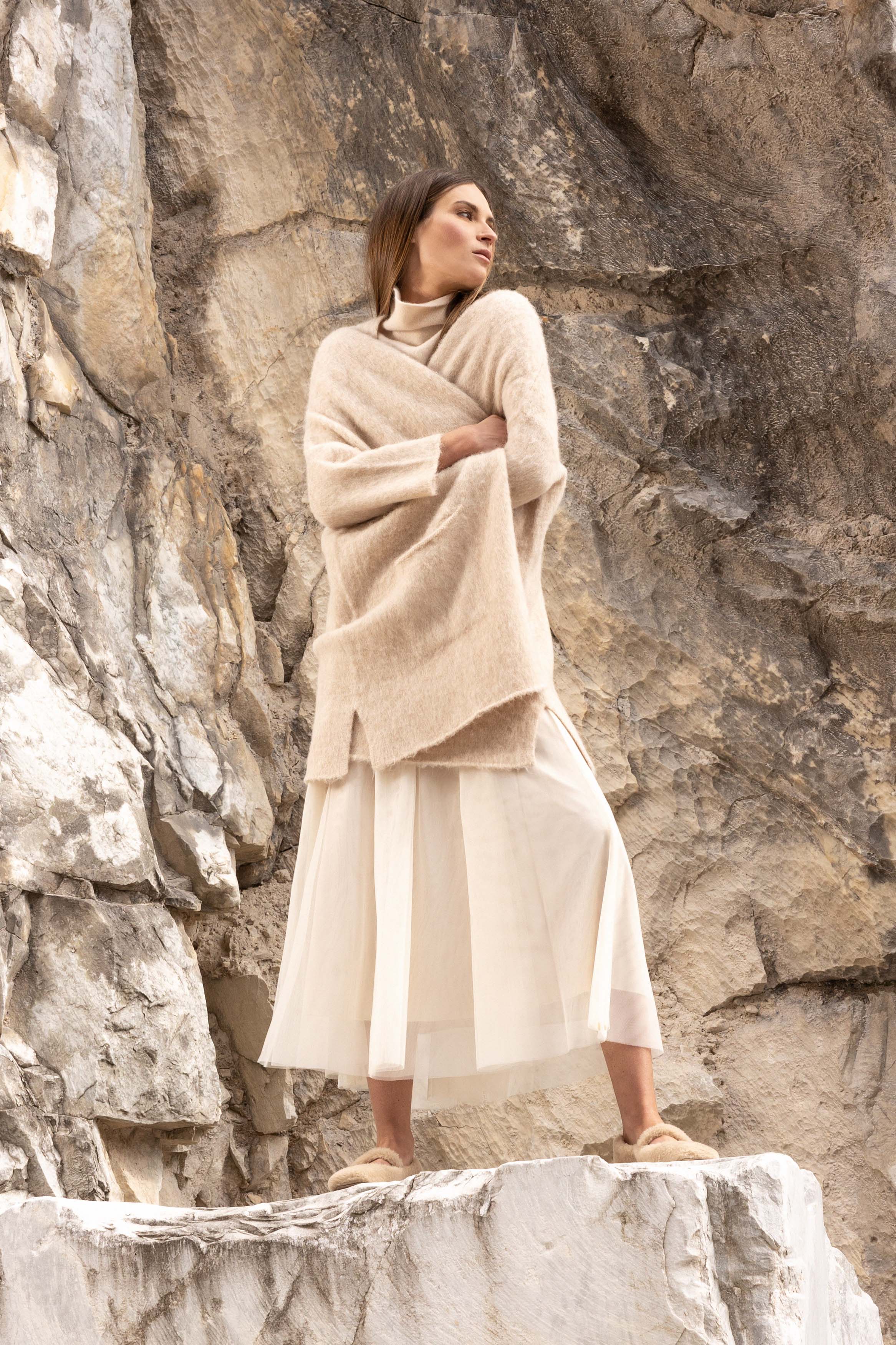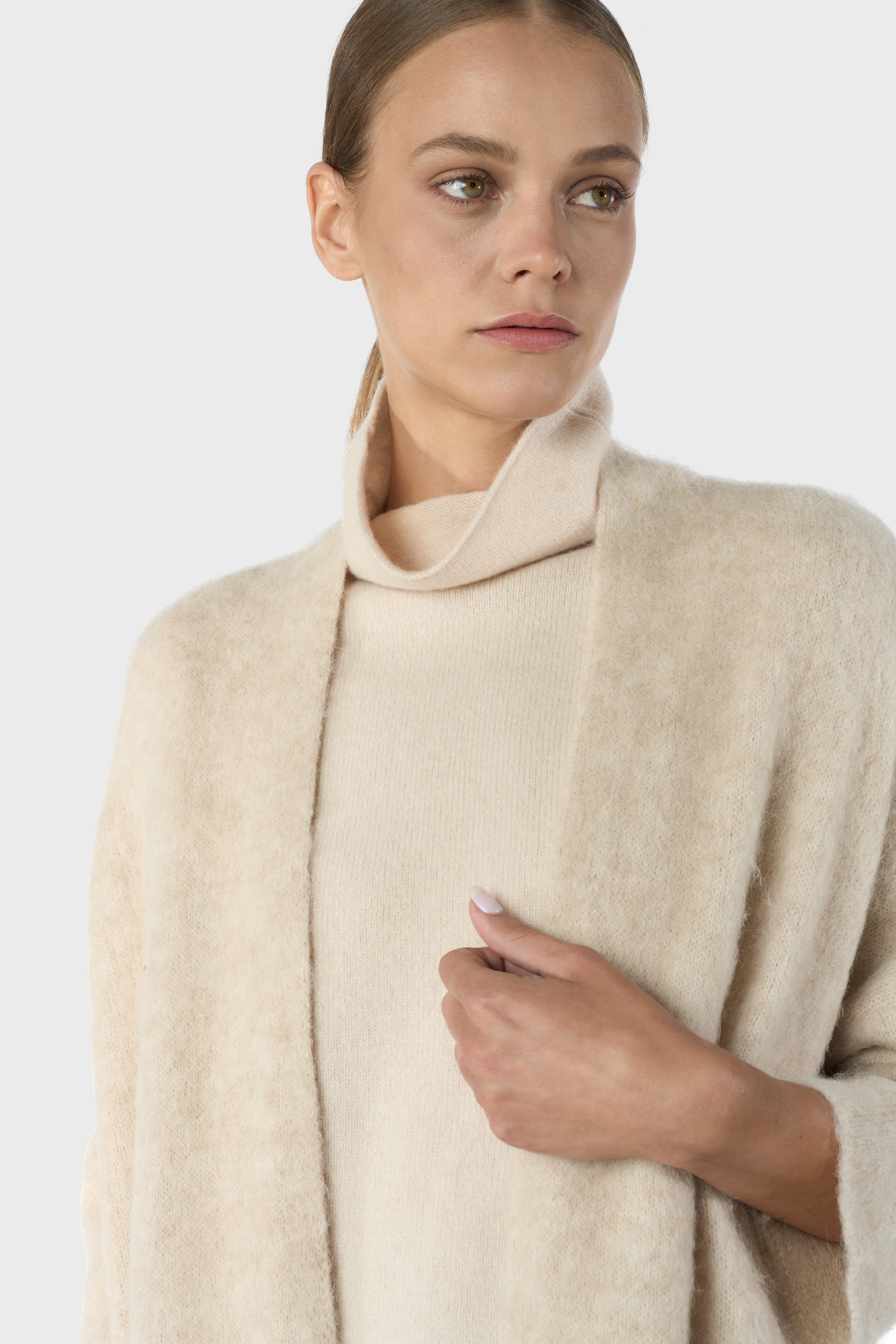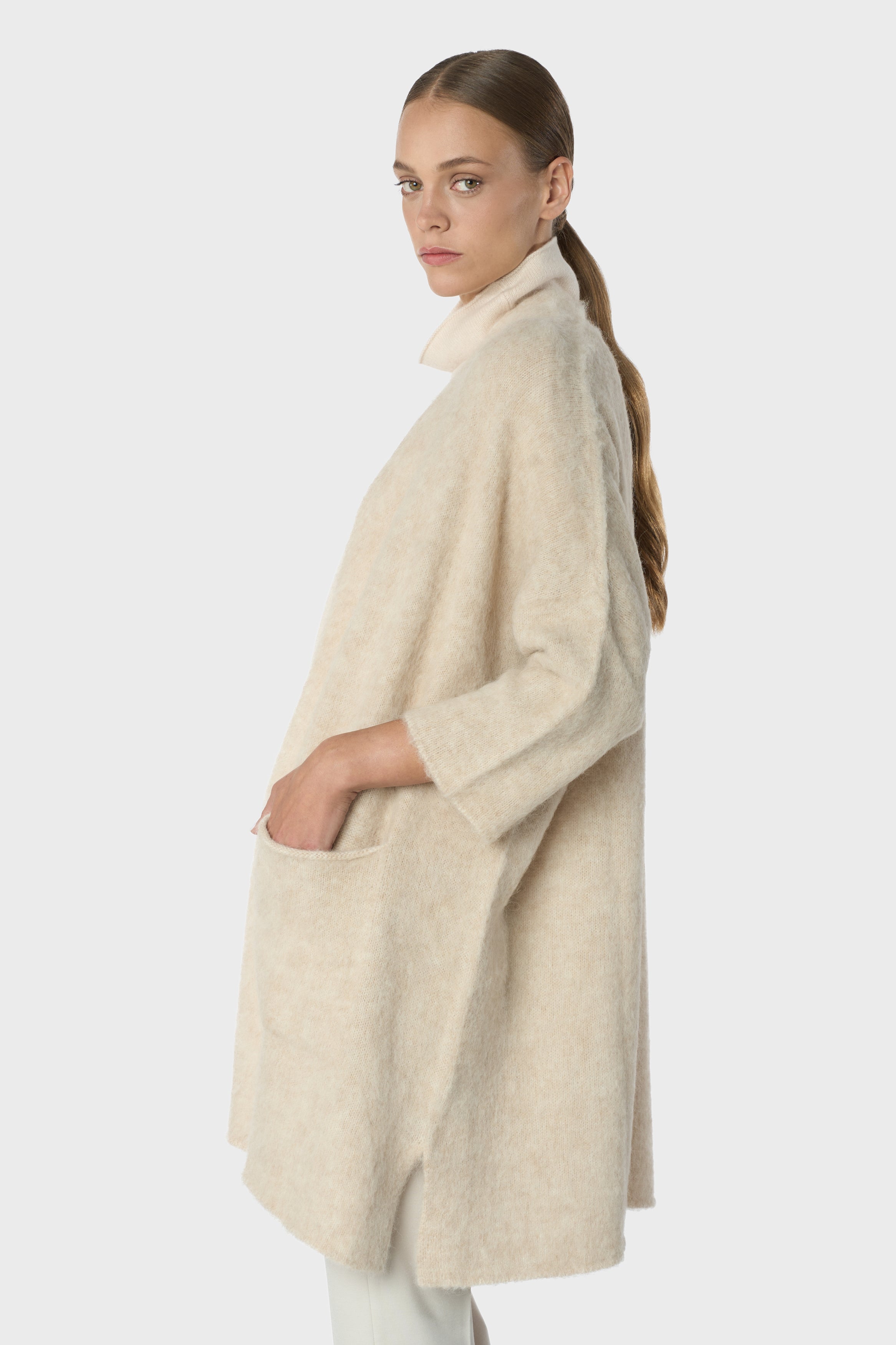 Brushed alpaca and wool maxi cardigan, 2 big front pockets, no buttons, cozy and contemporary.