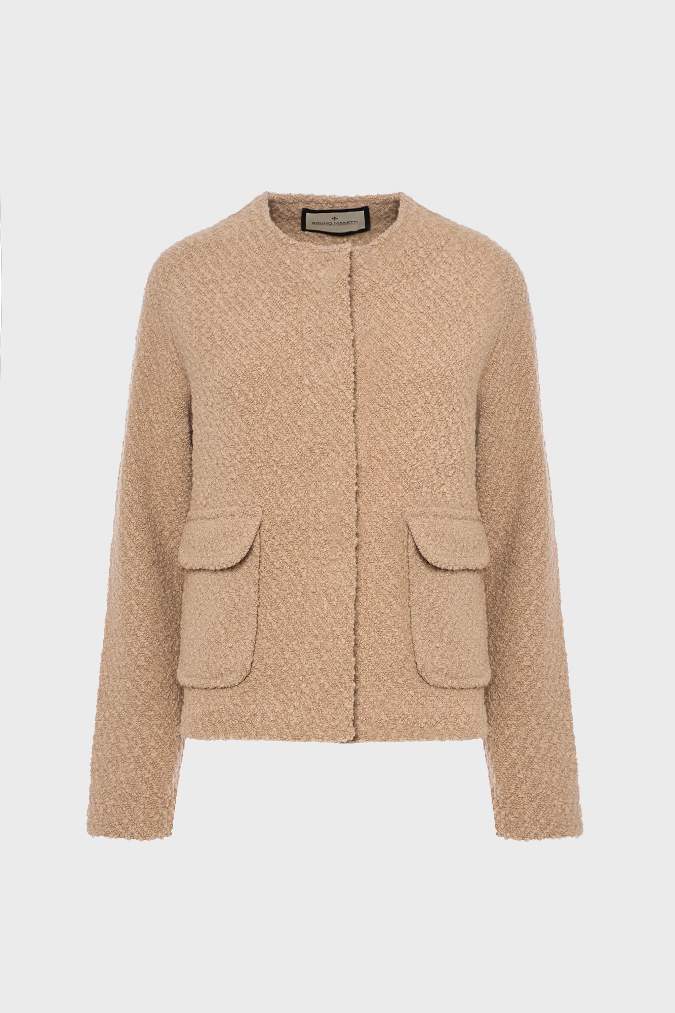 Blend wool jacket, oblique fancy knitting, 2 pockets, 5 press buttons, boxy shape