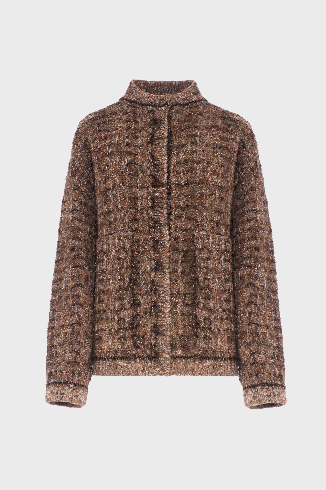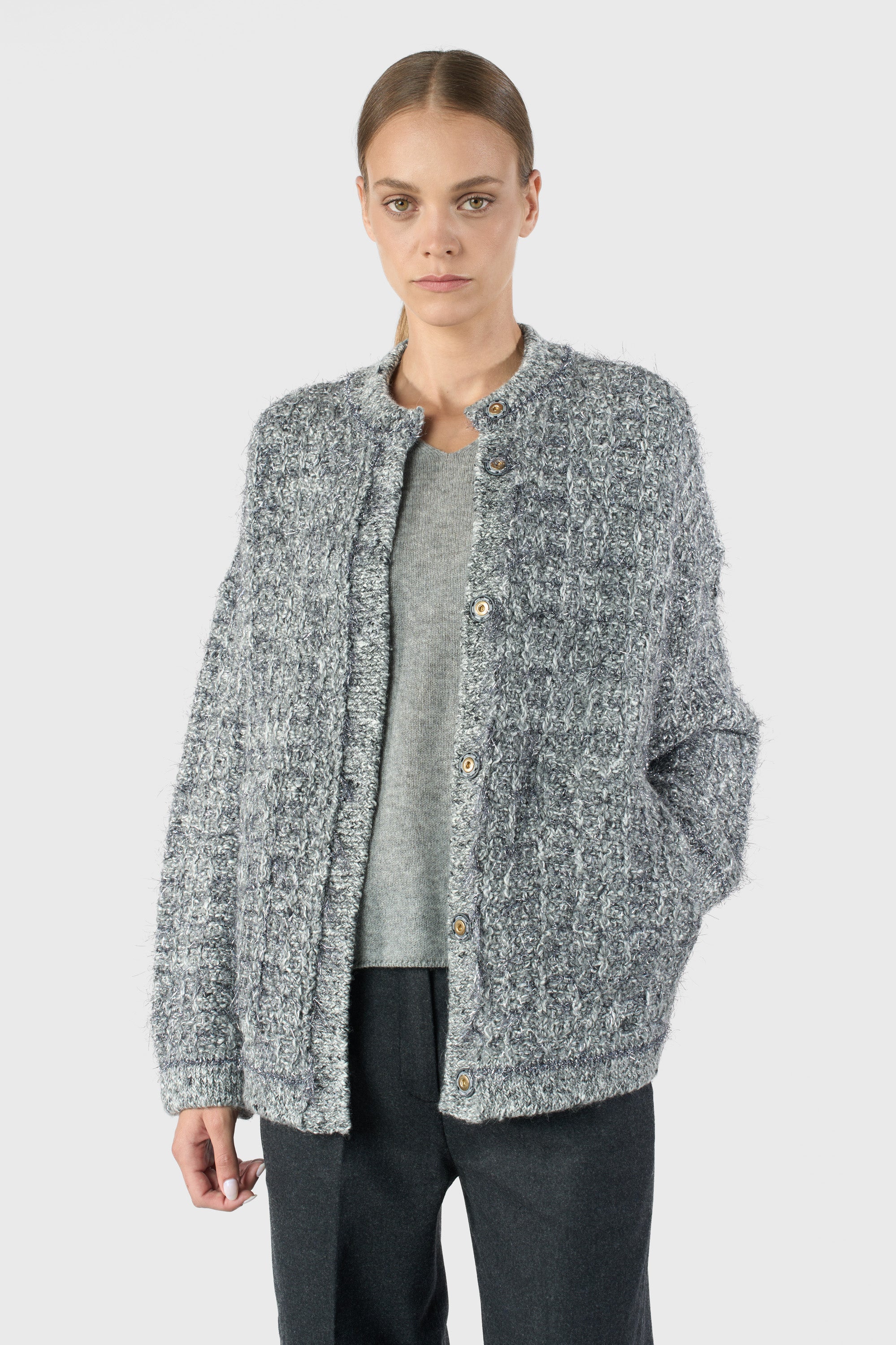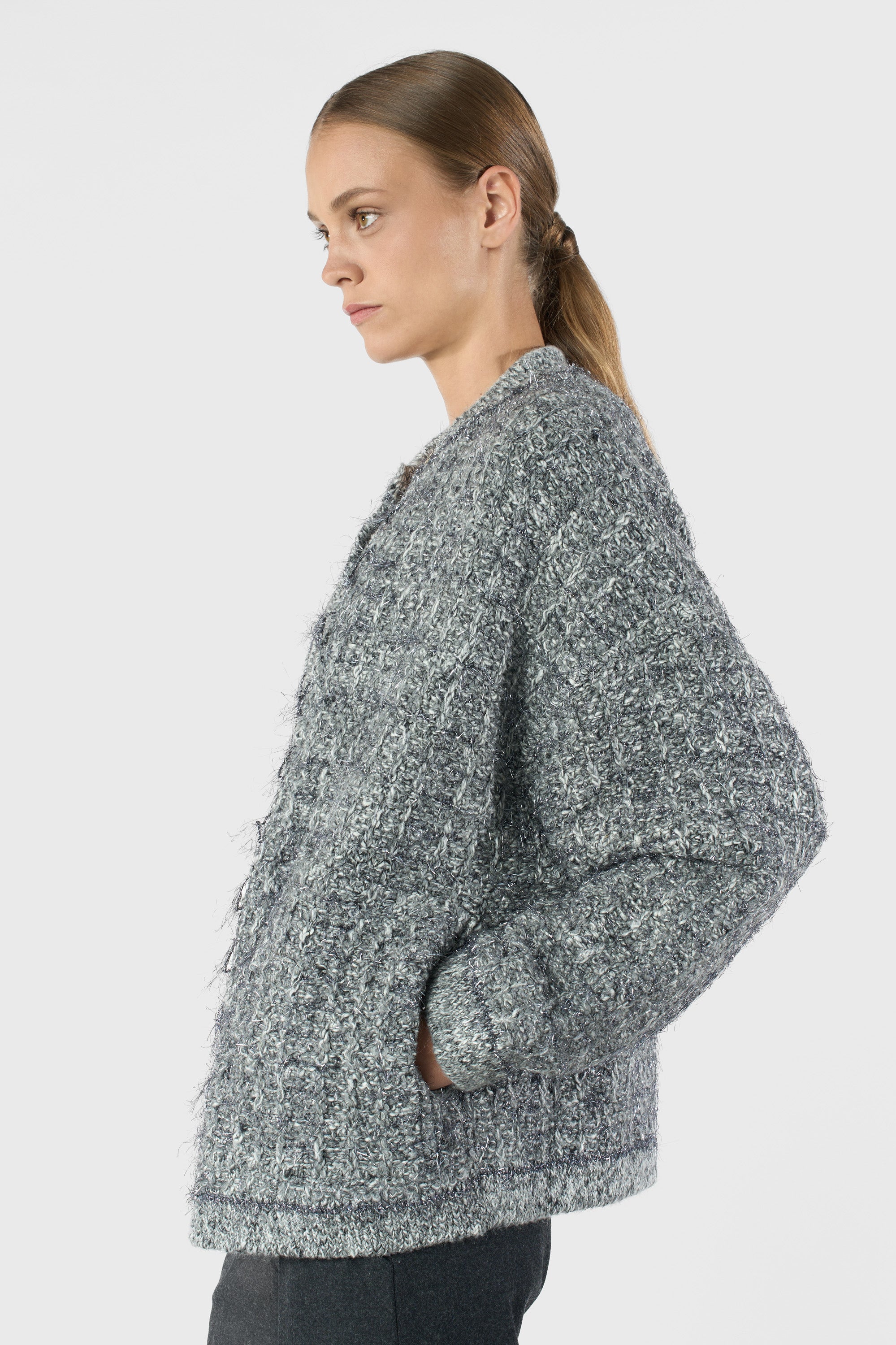 Wool and fancy yarns jacket, 2 big pockets, 5 press buttons, comfy fit