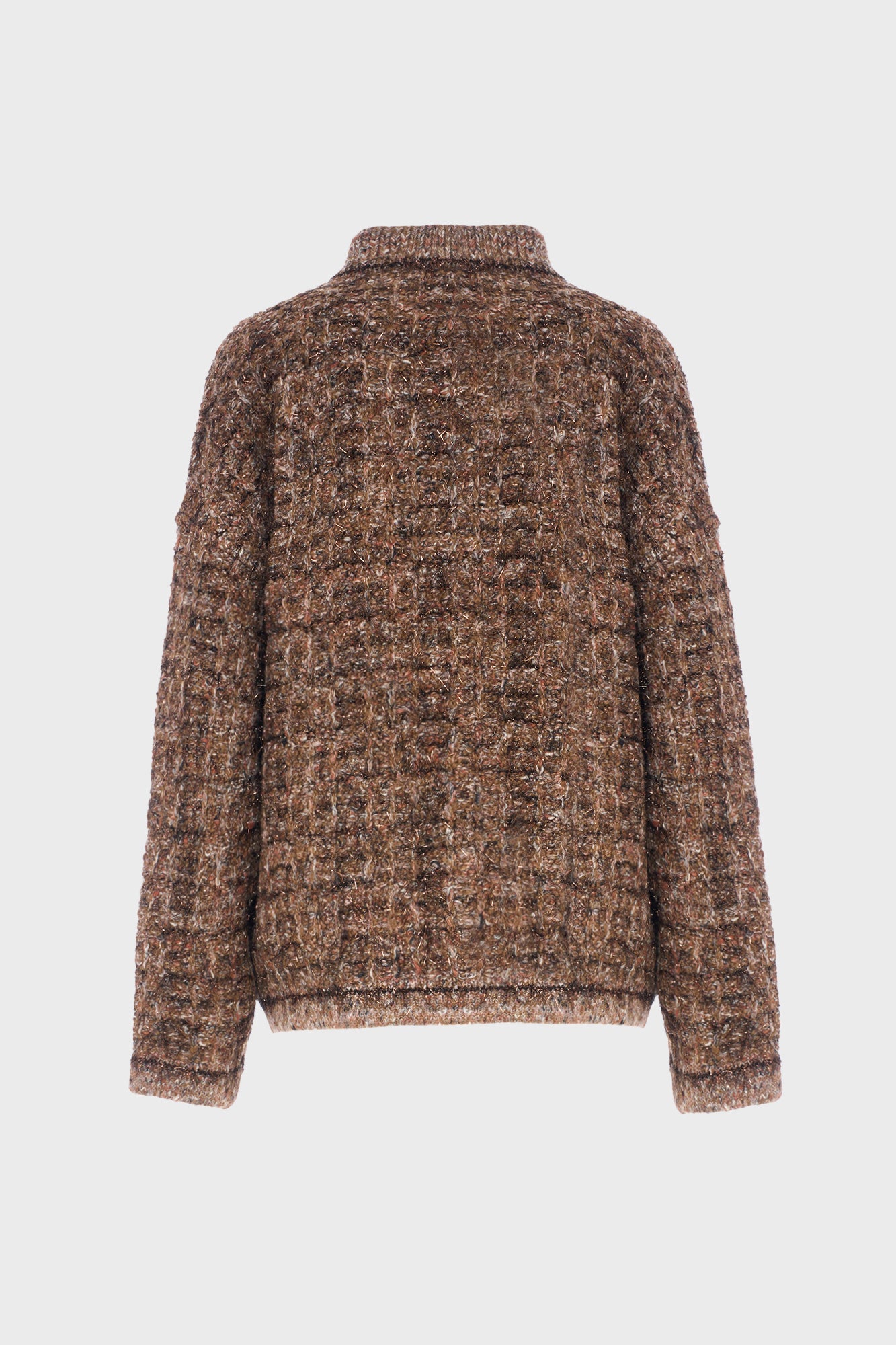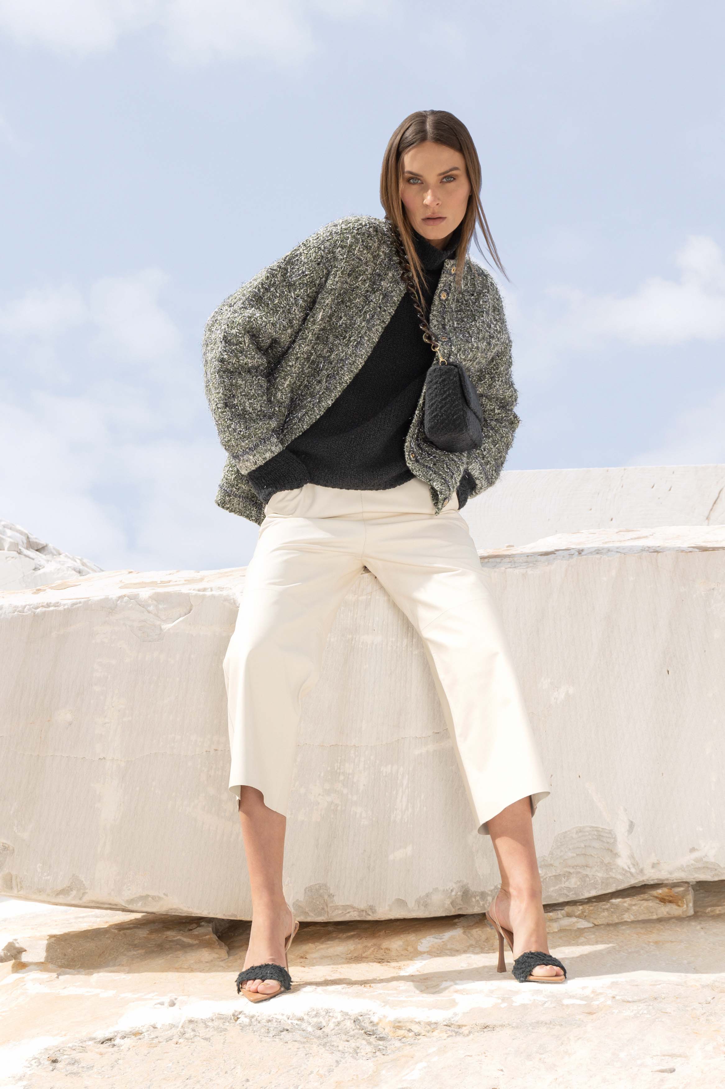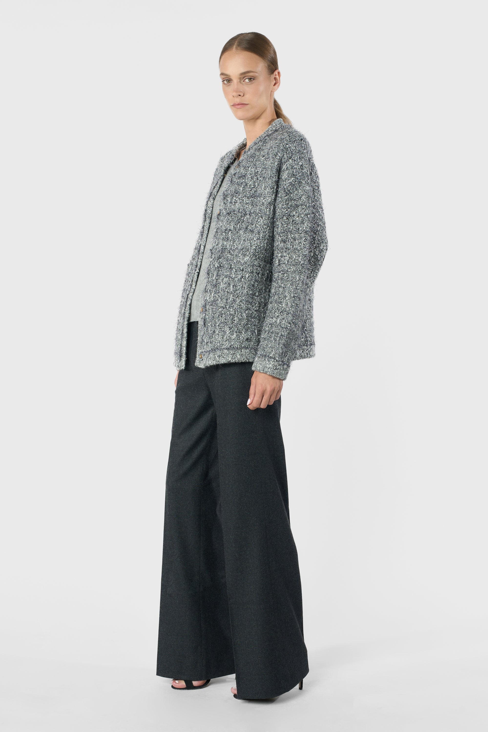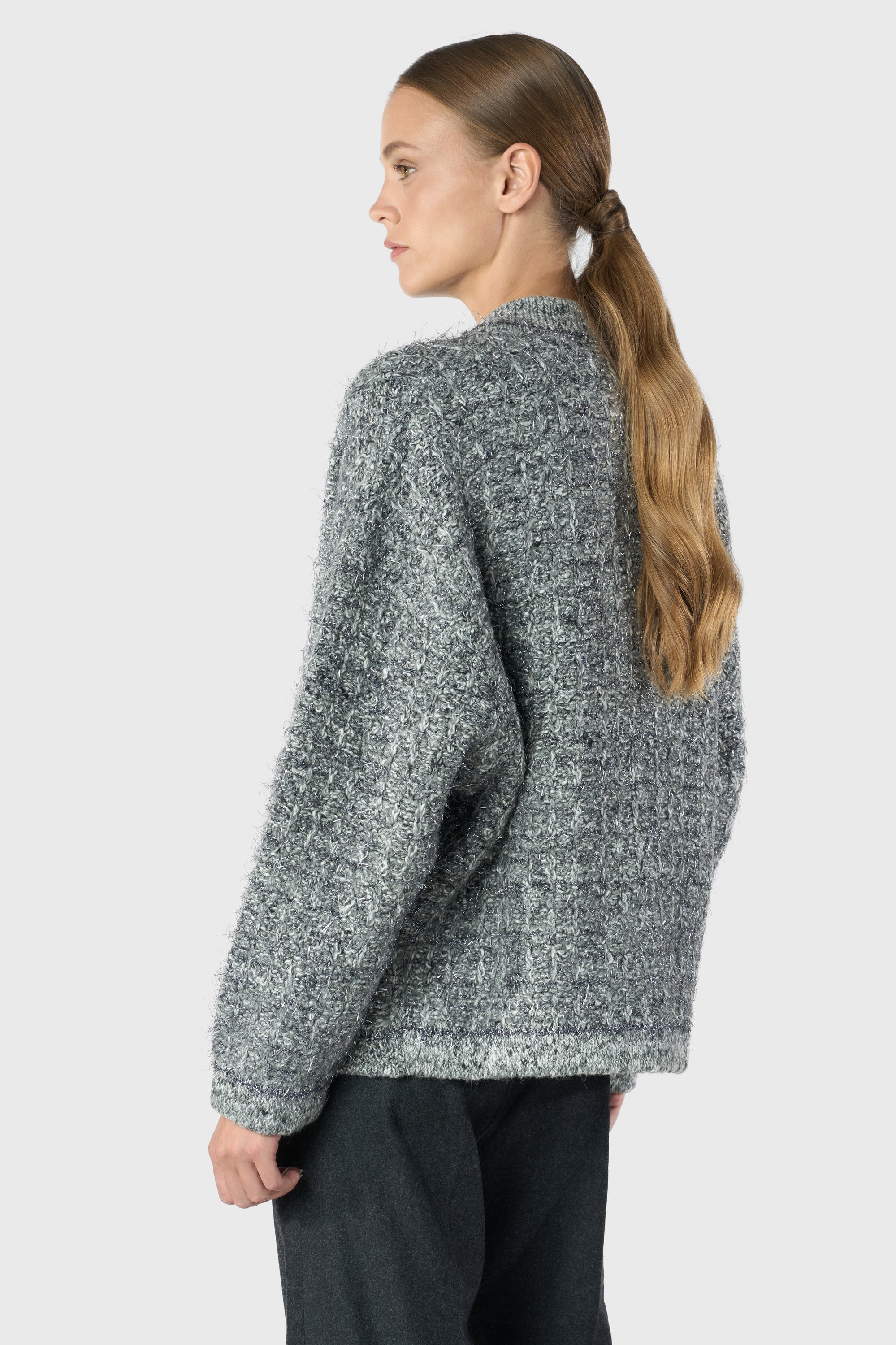 Wool and fancy yarns jacket, 2 big pockets, 5 press buttons, comfy fit