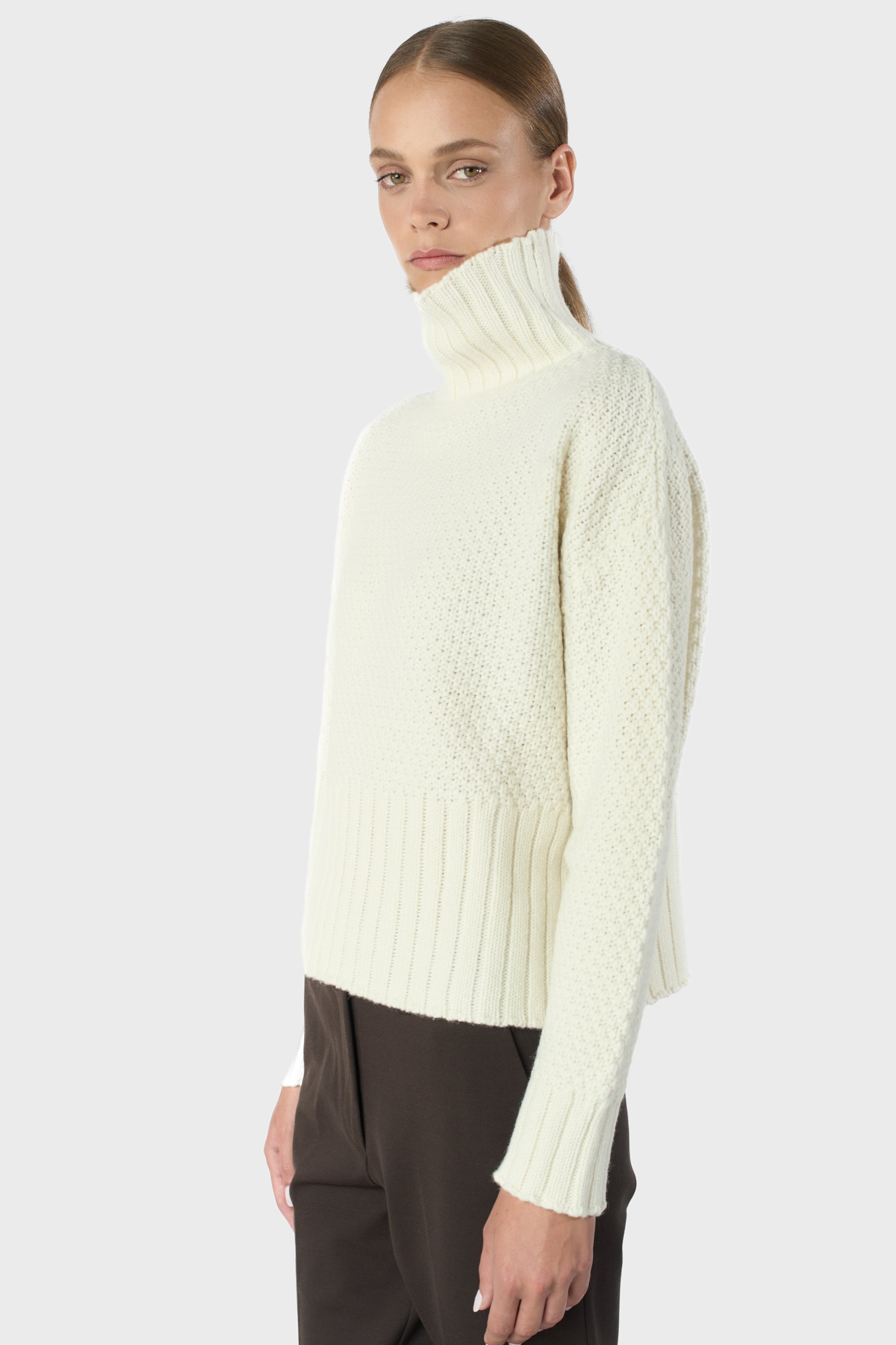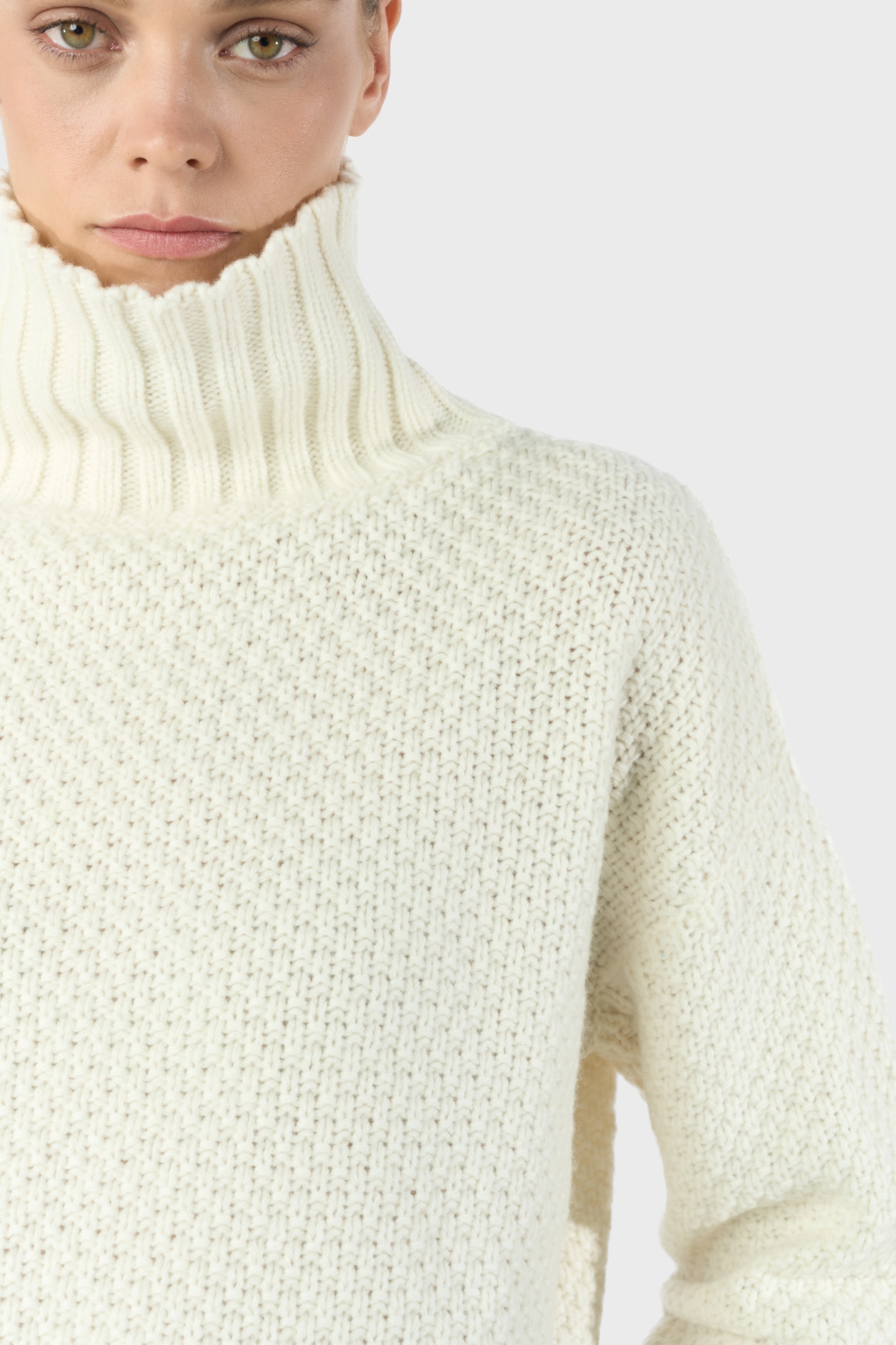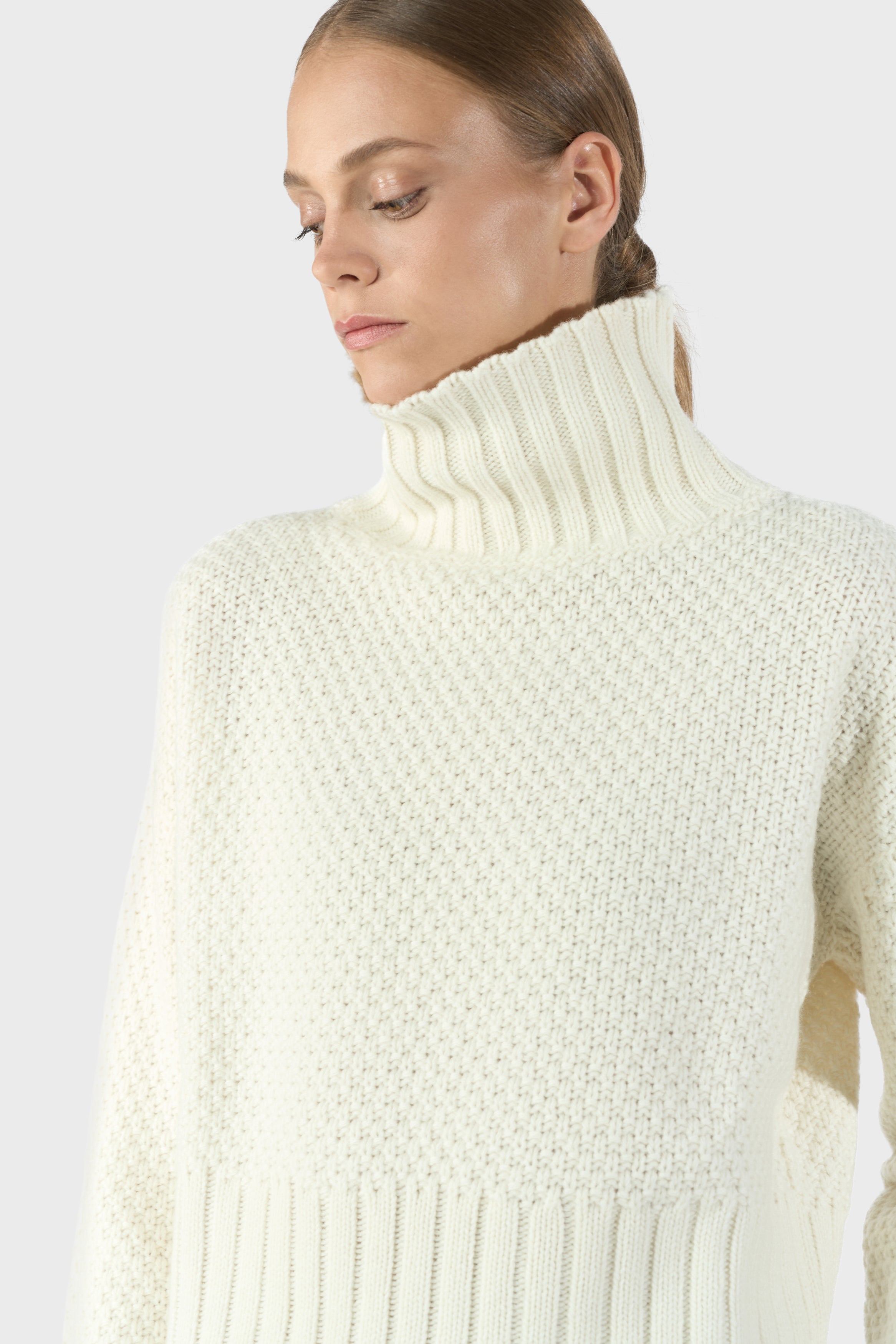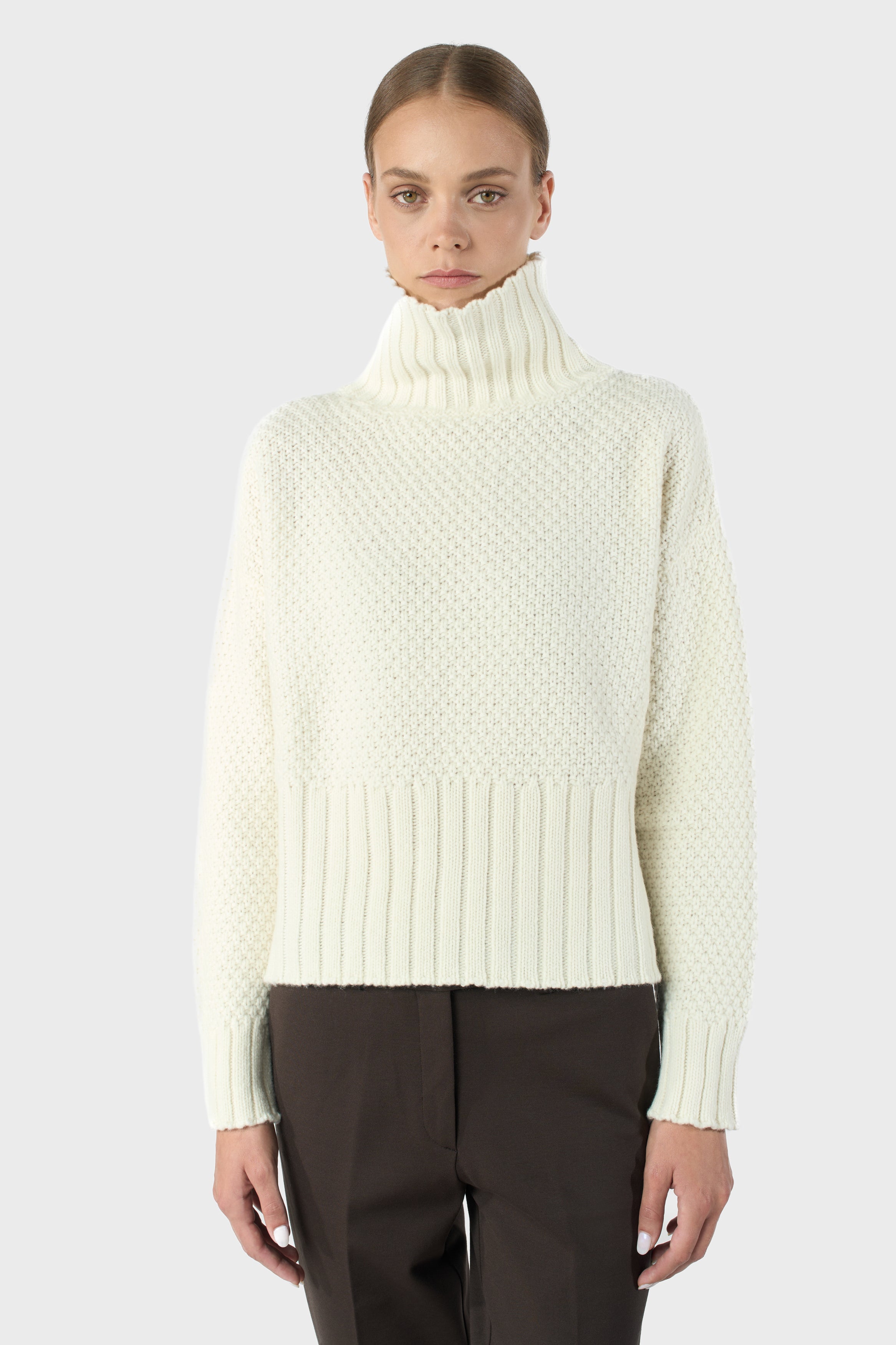 6 ply, mix cashmere roll neck sweater, waffle knitting, boxy fit