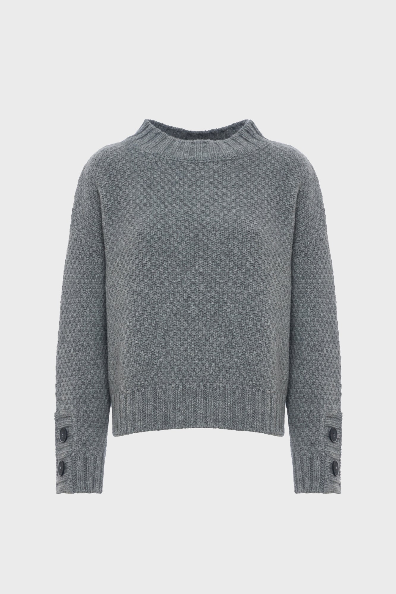 Soft, cashmere mix sweater, waffle knit, button on the cuff, comfy fit