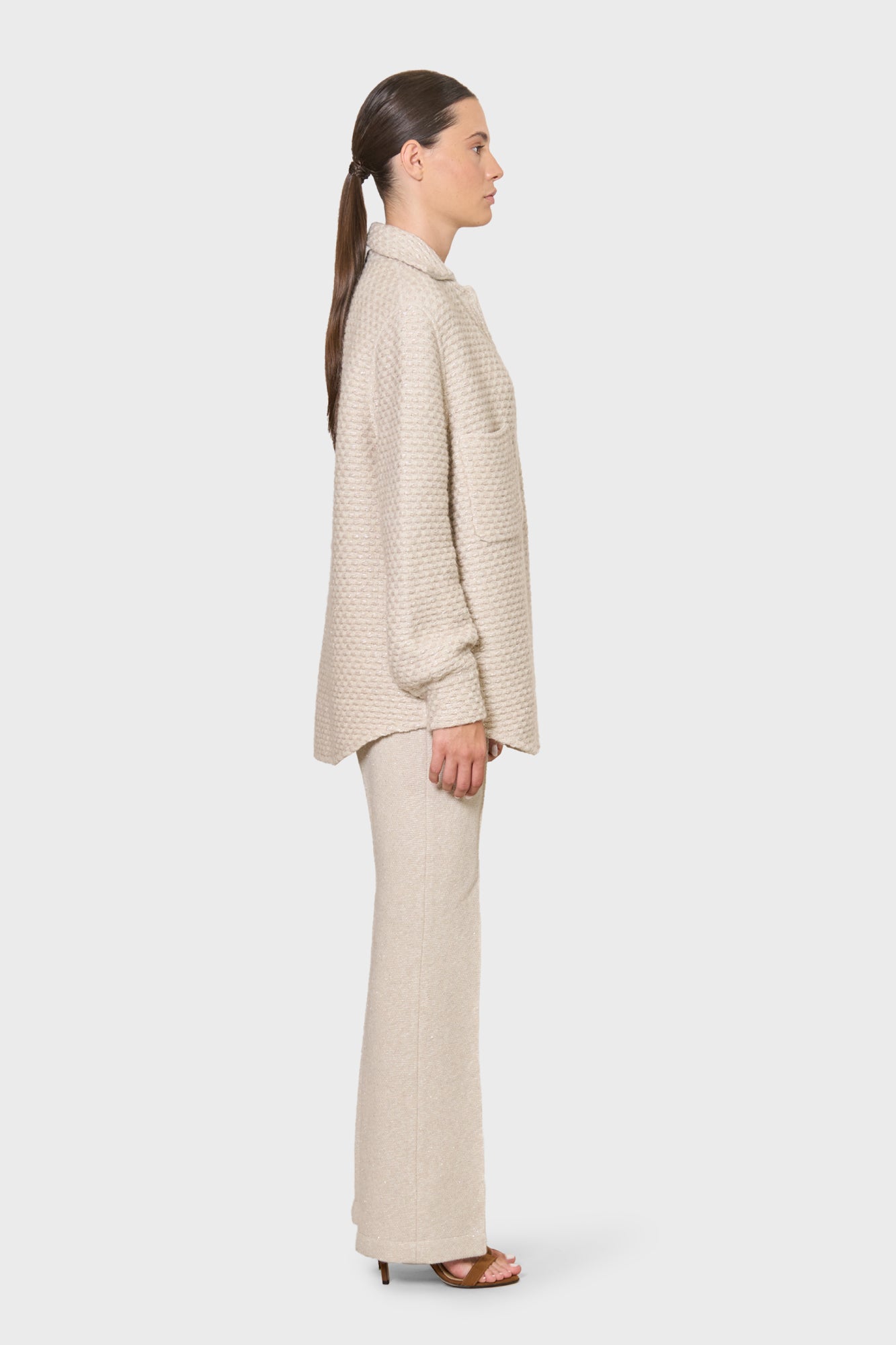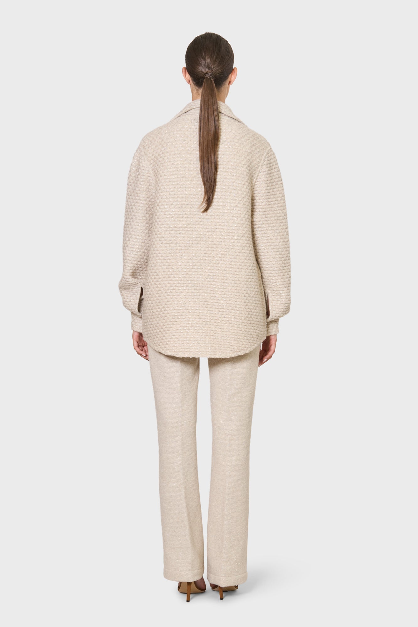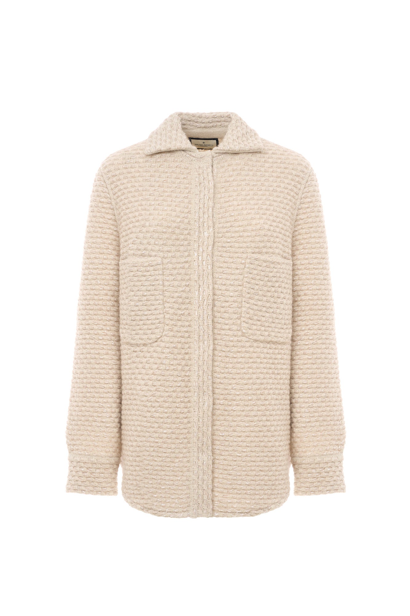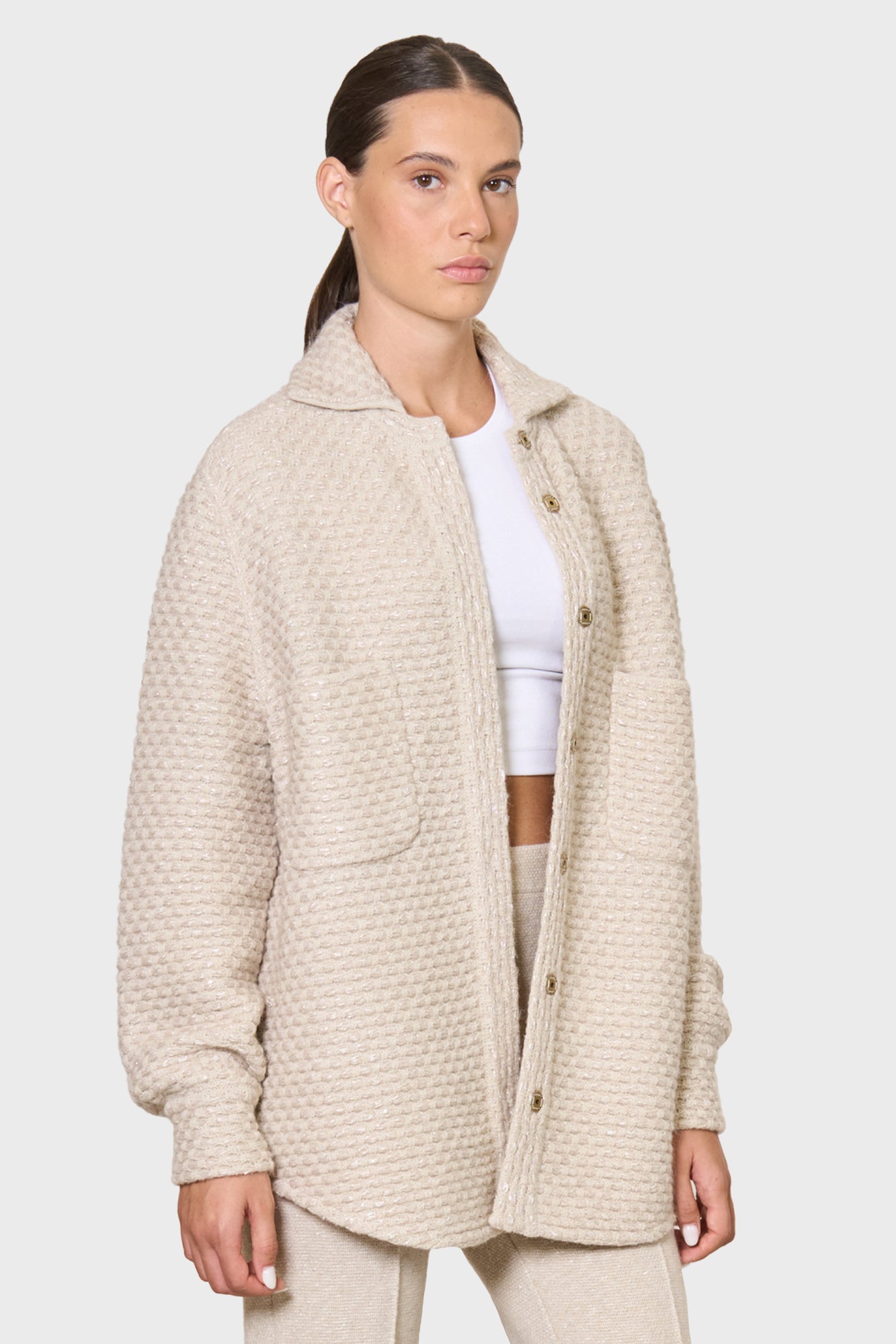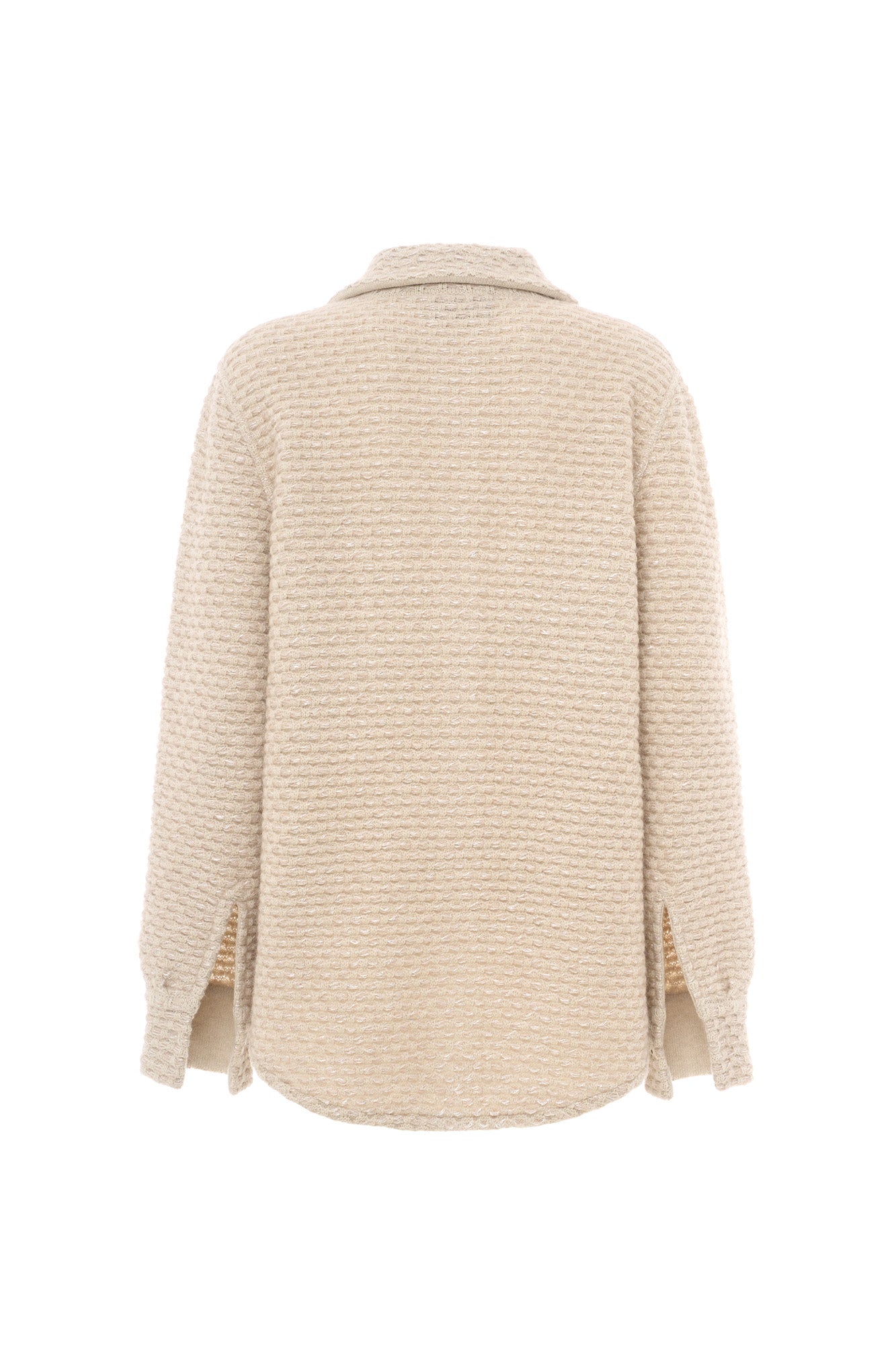 Shirt jacket in knitted fabric, mix wool and alpaca, waffle structure with a light lurex yarn, 2 front pockets, 7 press buttons, sporty fit