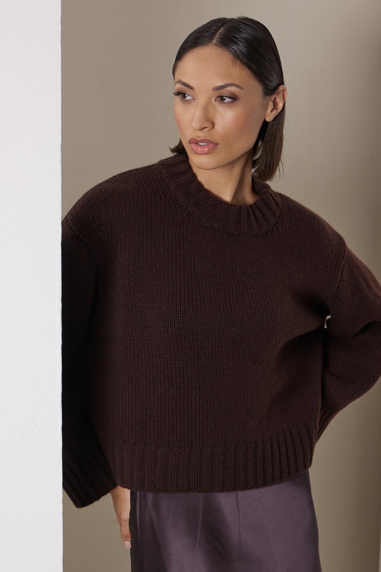 Maglia paricollo di 100% cashmere a 6 fili, volume over.